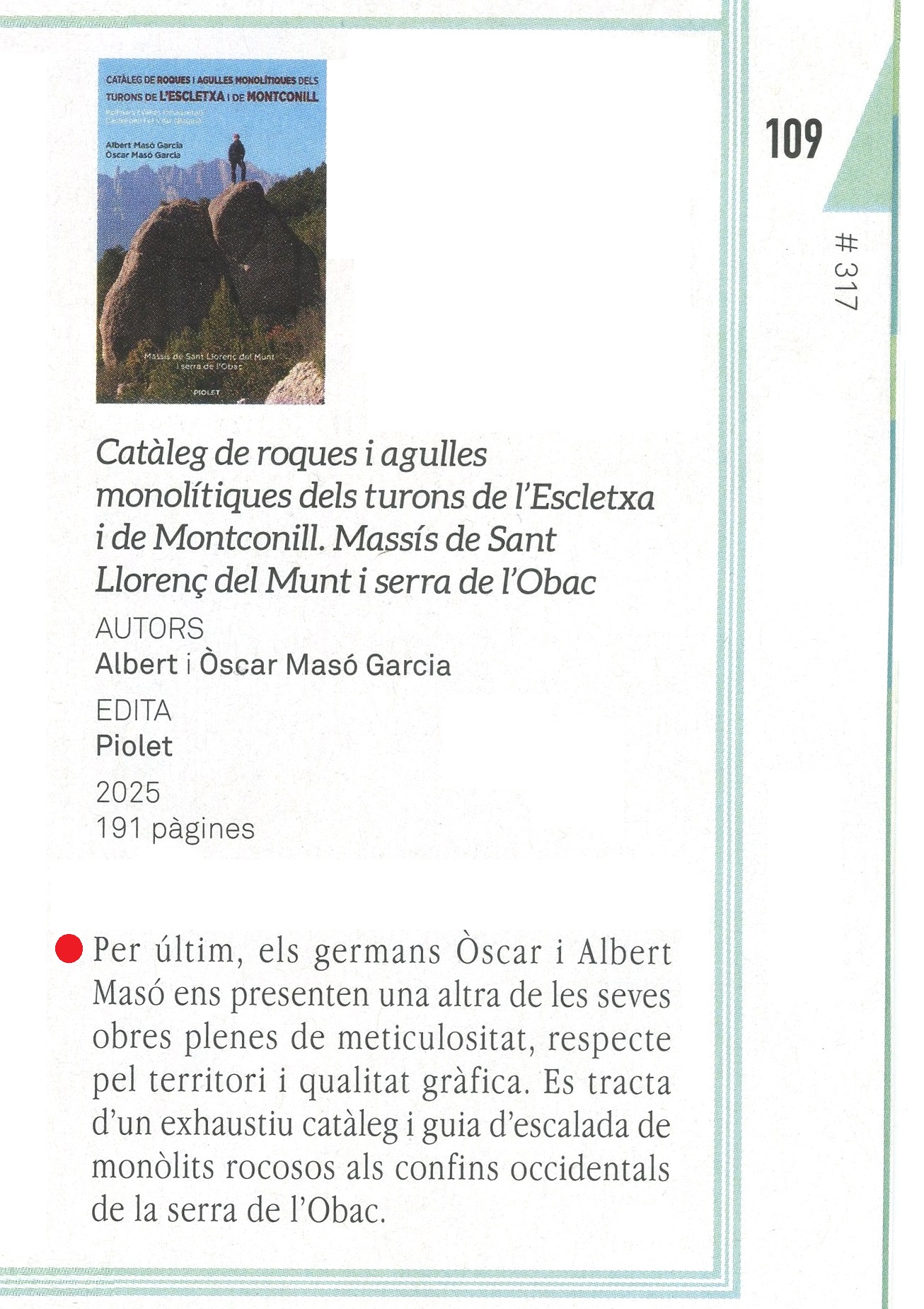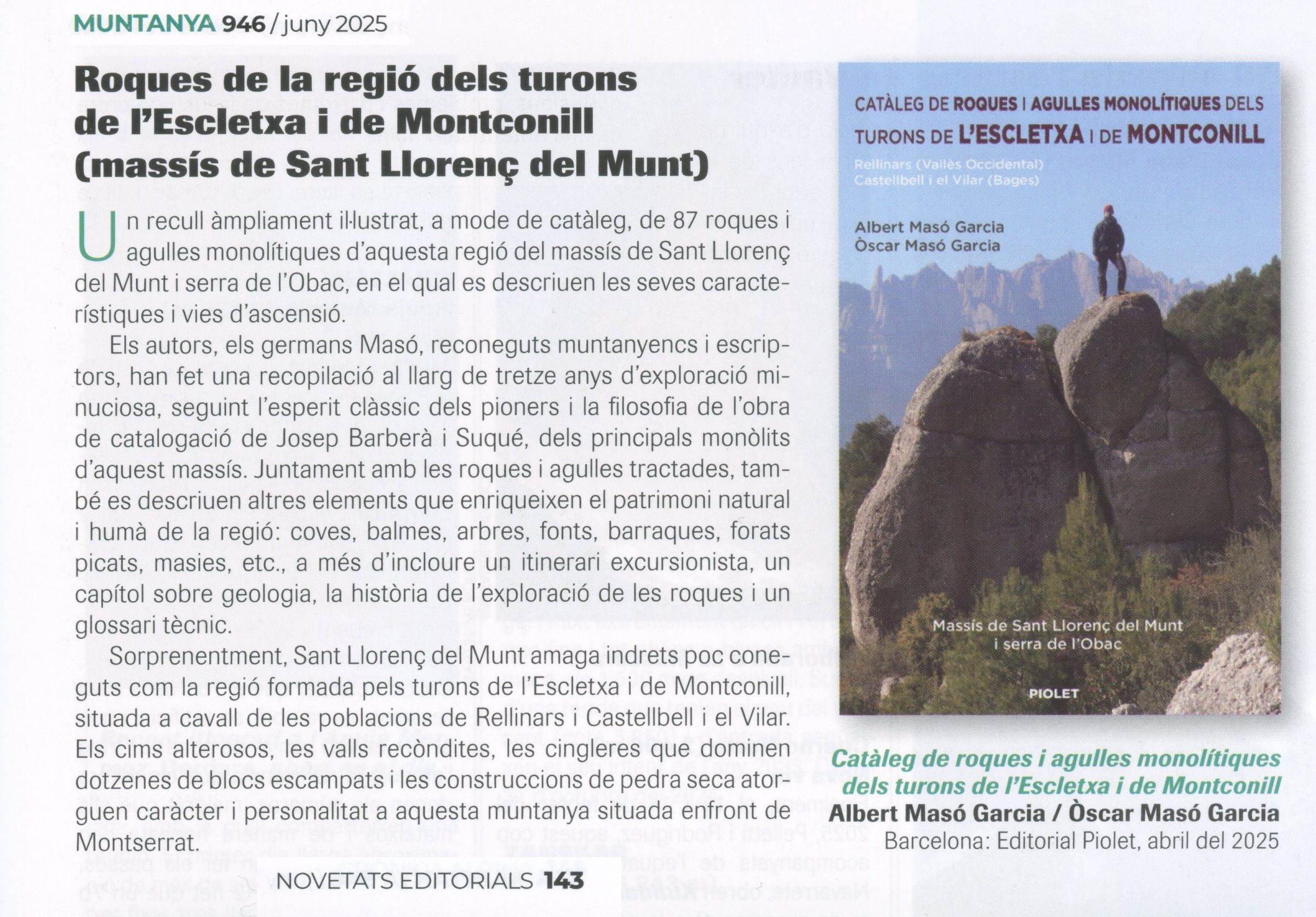 - Revista Muntanya nº946, juny 2025. Ressenya del llibre a dins de la secció “Novetats editorials“, pàg. 143.