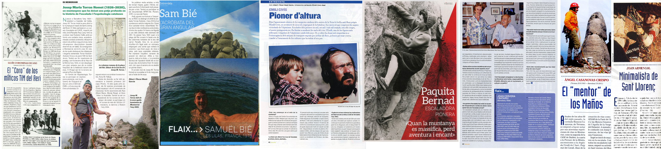 A banda dels articles publicats per Albert i Òscar Masó Garcia també s’hi han d’afegir els escrits dedicats a diferents persones de l’àmbit muntanyenc materialitzats en forma d’entrevista o de recordatori en cas que la persona ens hagi deixat. Han aparegut en diverses de les publicacions esmentades en la pàgina d’Articles. Tots els escrits estan en català excepte els que s’indiquen en castellà, i apareixen ordenats cronològicament: