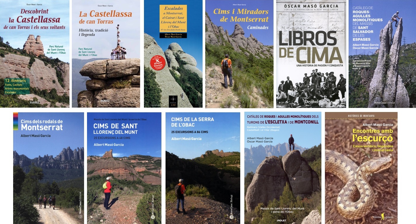 “Escalades a Montserrat, el Cairat i Sant Llorenç del Munt i l’Obac. 87 vies d’escalada d’estil clàssic”. Recull guanyador del X Premi Vèrtex. Cossetània Edicions. Col·lecció Azimut, nº 120. Març de 2011. ISBN: 978-84-9791-856-5. Albert i Òscar Masó Garcia. En català.