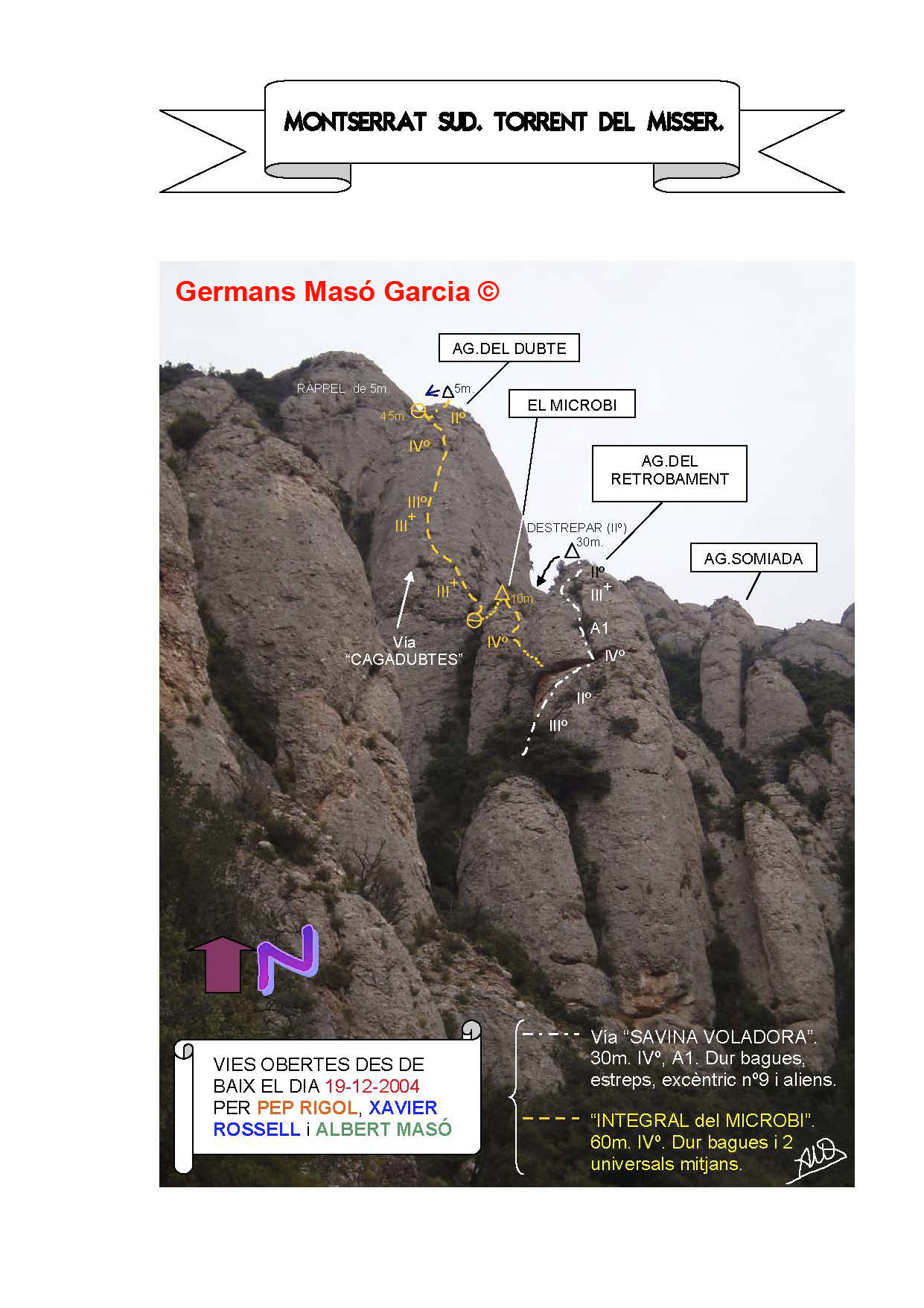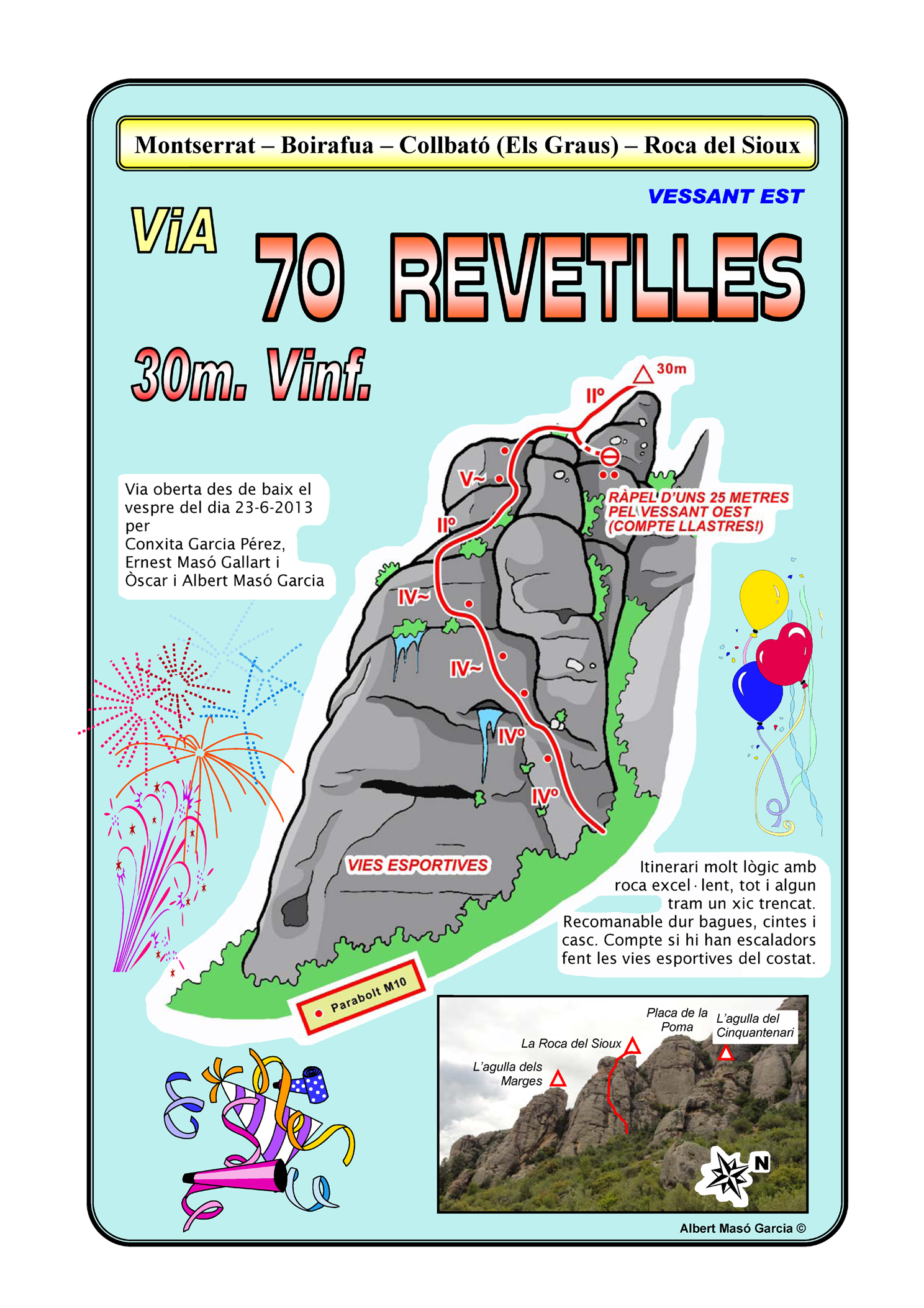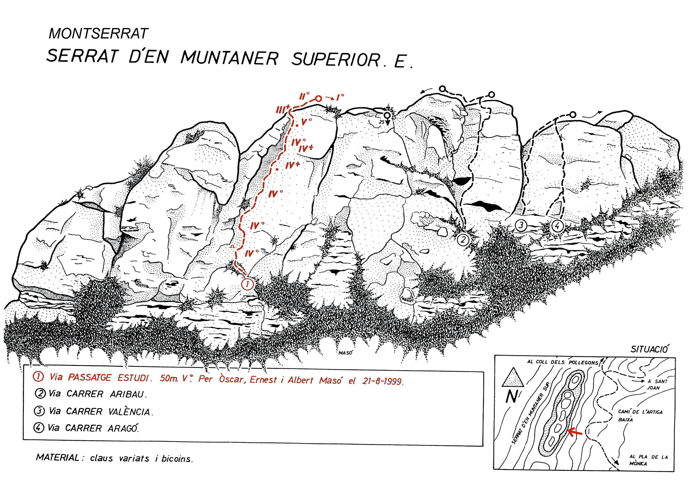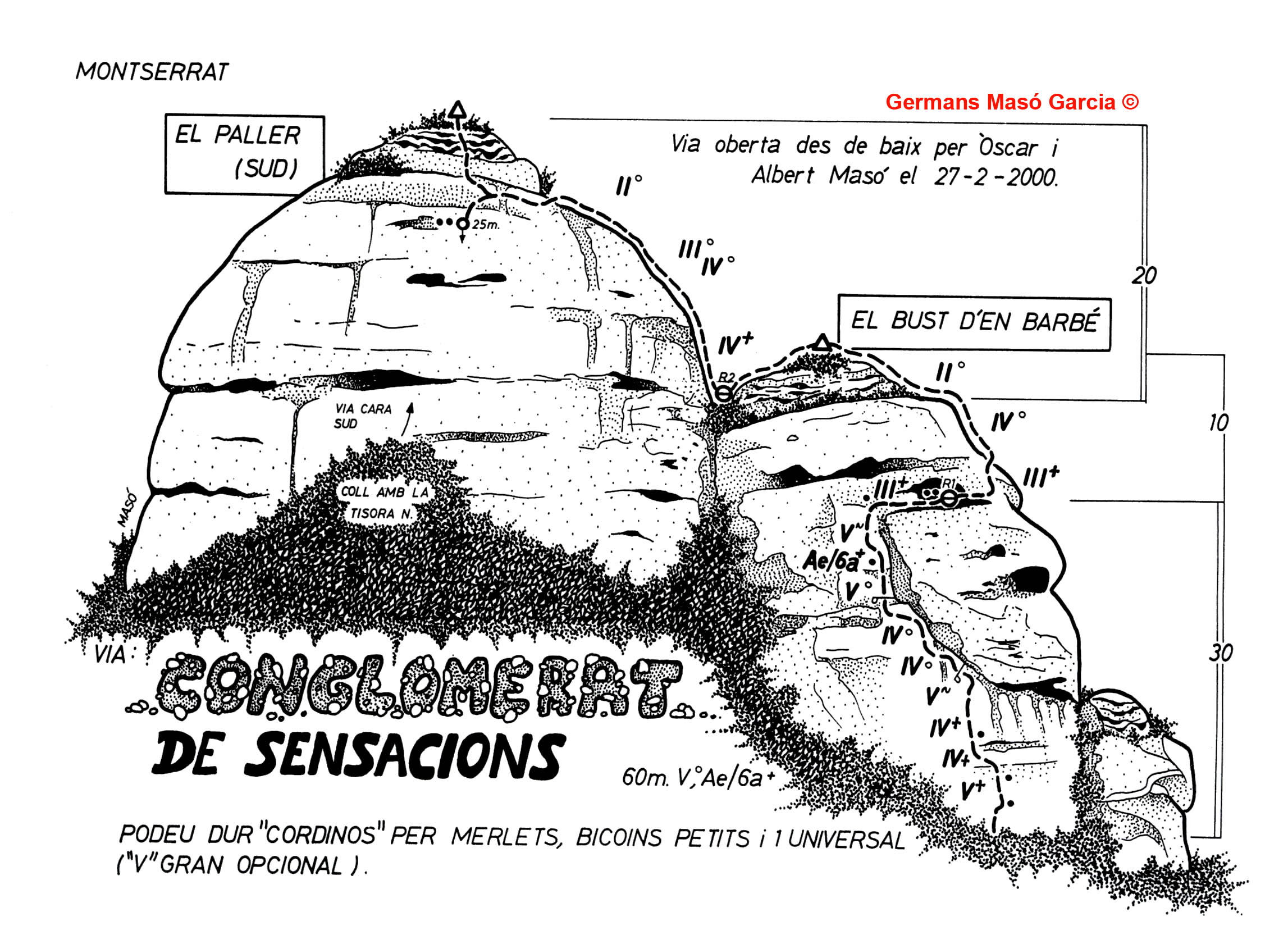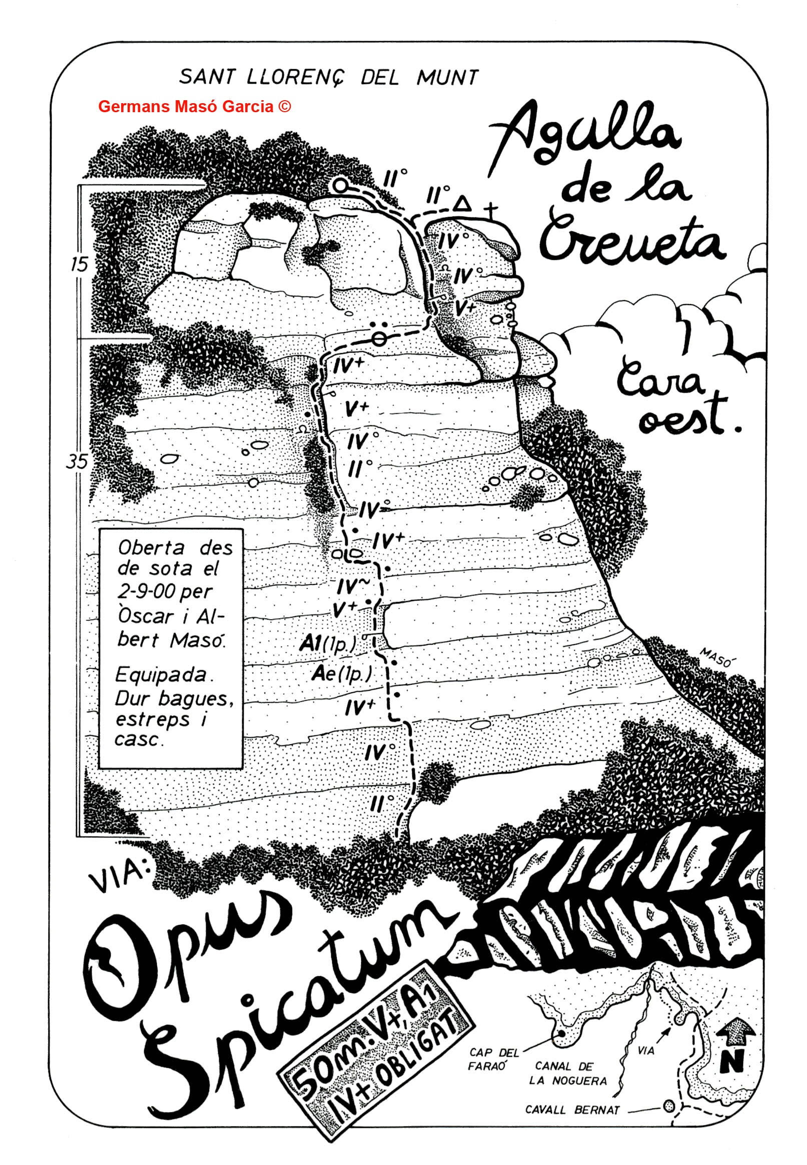 SEGURETAT: La pràctica de l’escalada és un esport que comporta risc. Tothom qui vulgui repetir alguna de les vies ressenyades en aquesta web és l’únic responsable de la seva pròpia seguretat i del conjunt de la cordada. En aquest sentit, els autors de les vies i les ressenyes declinen qualsevol responsabilitat.