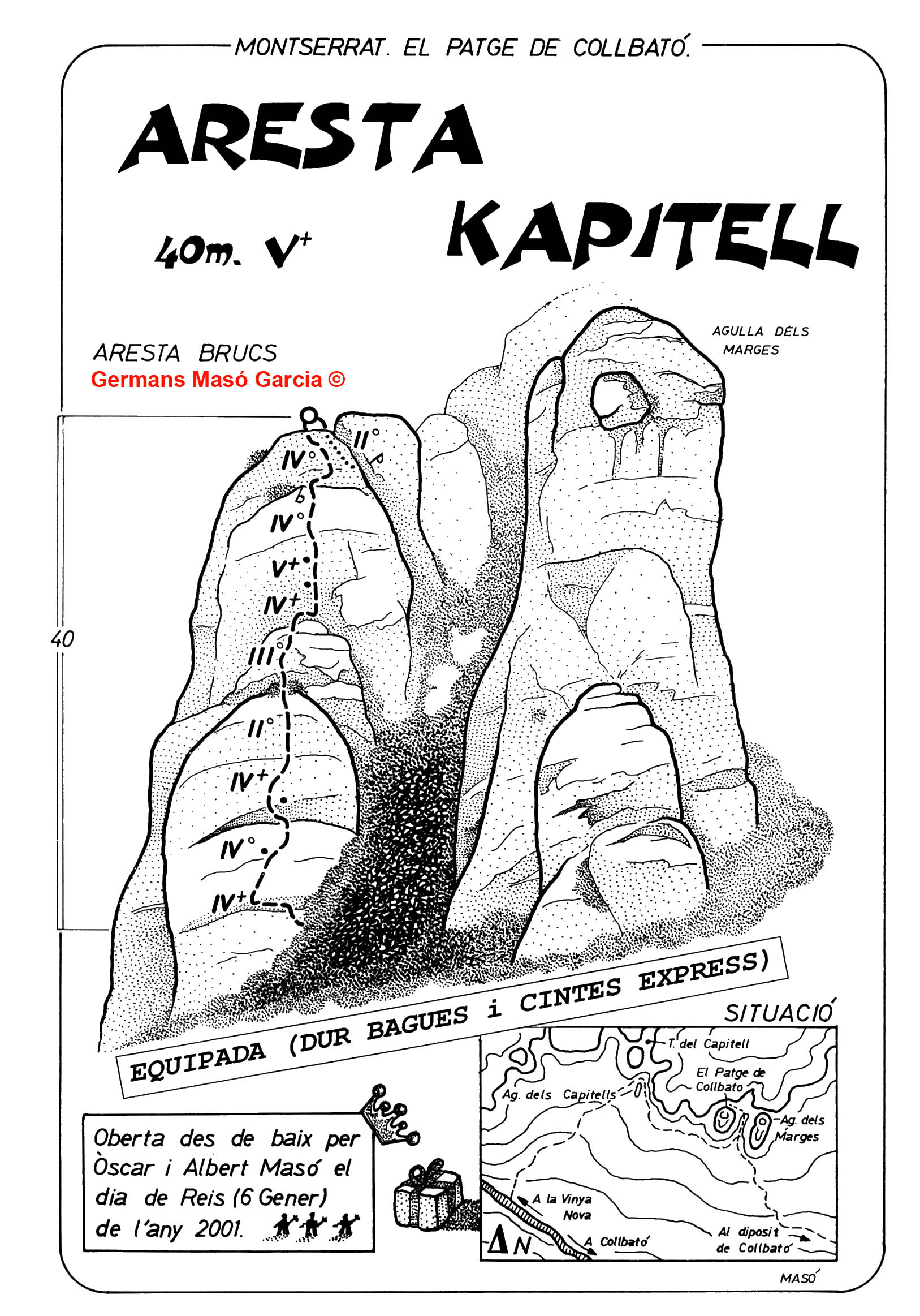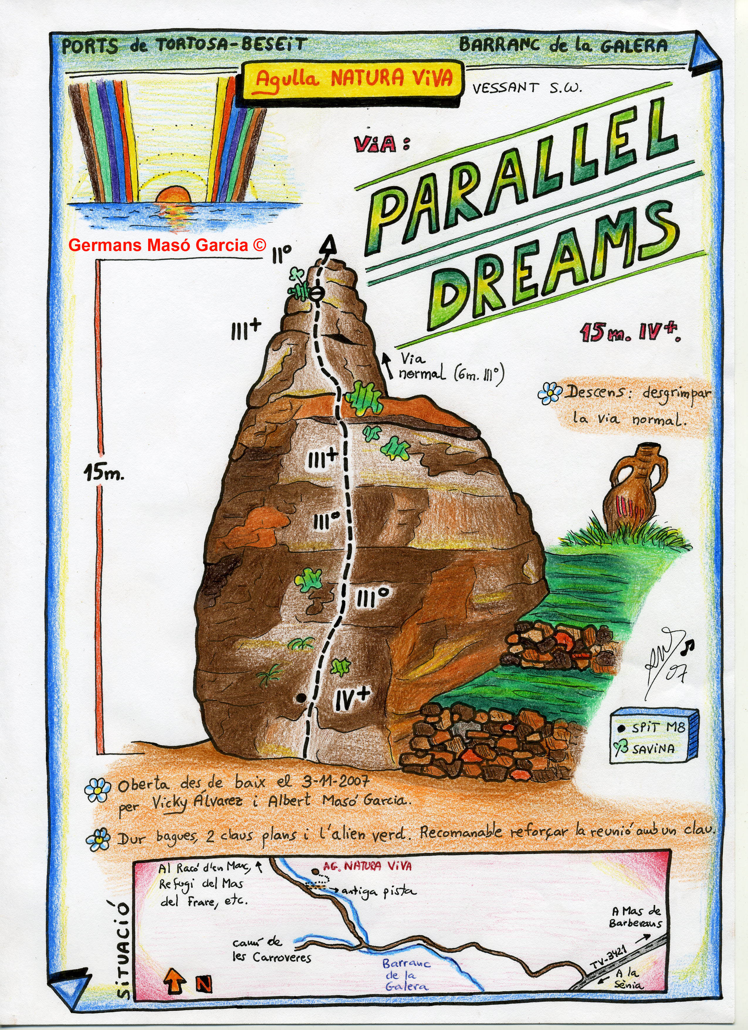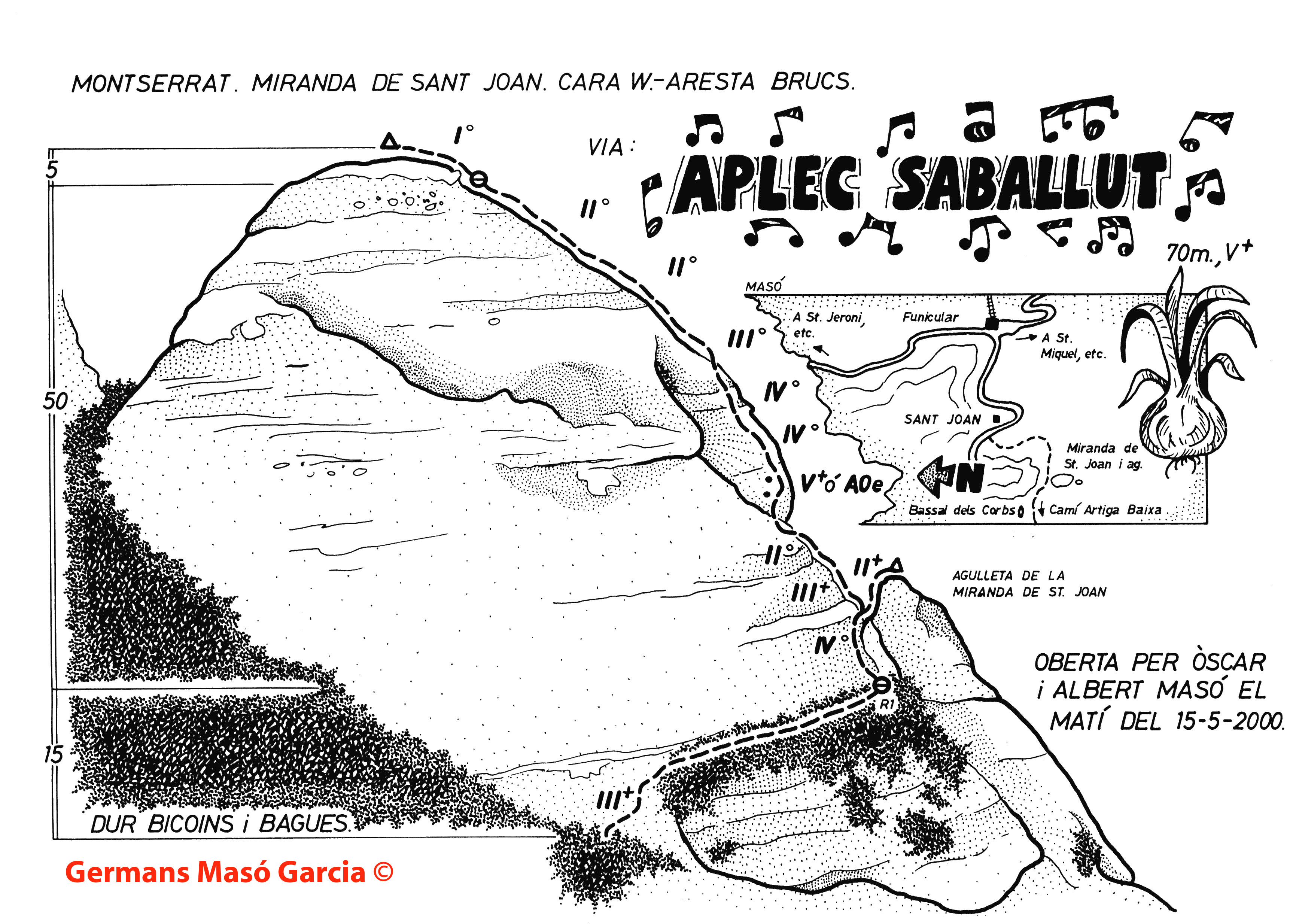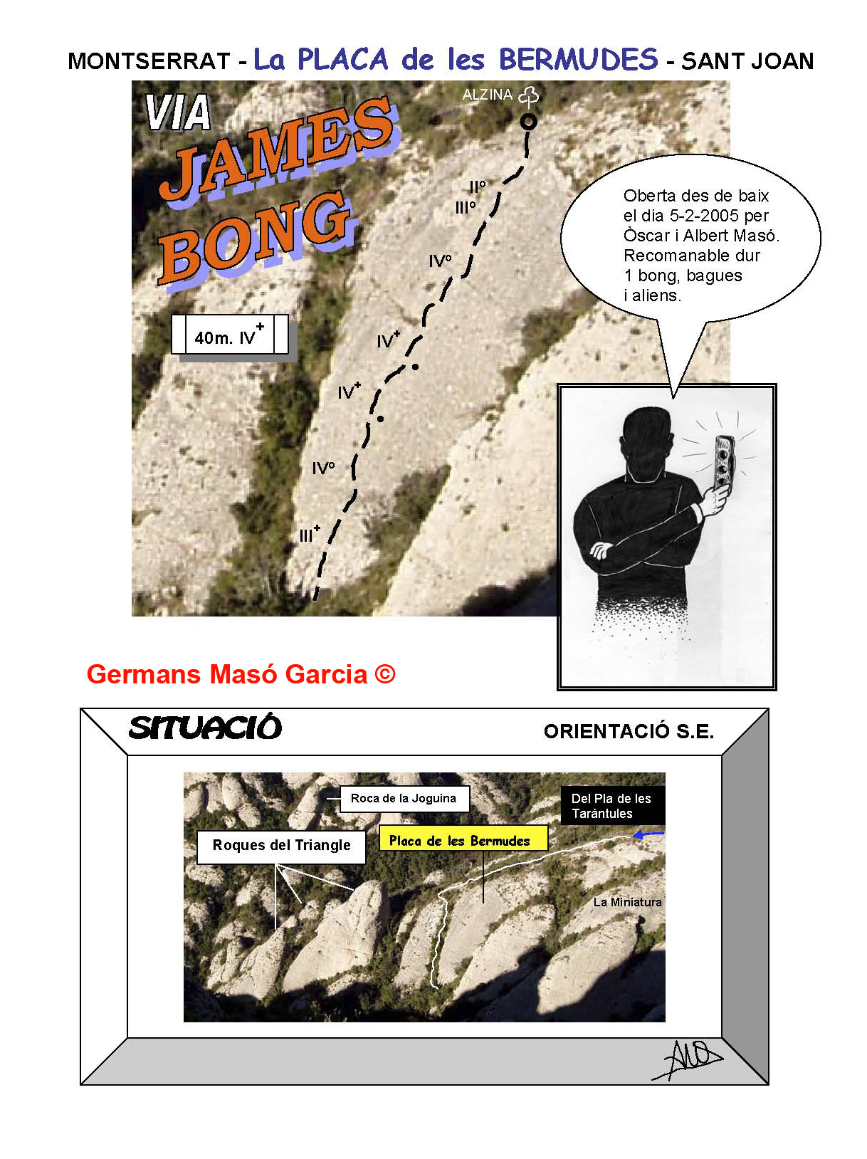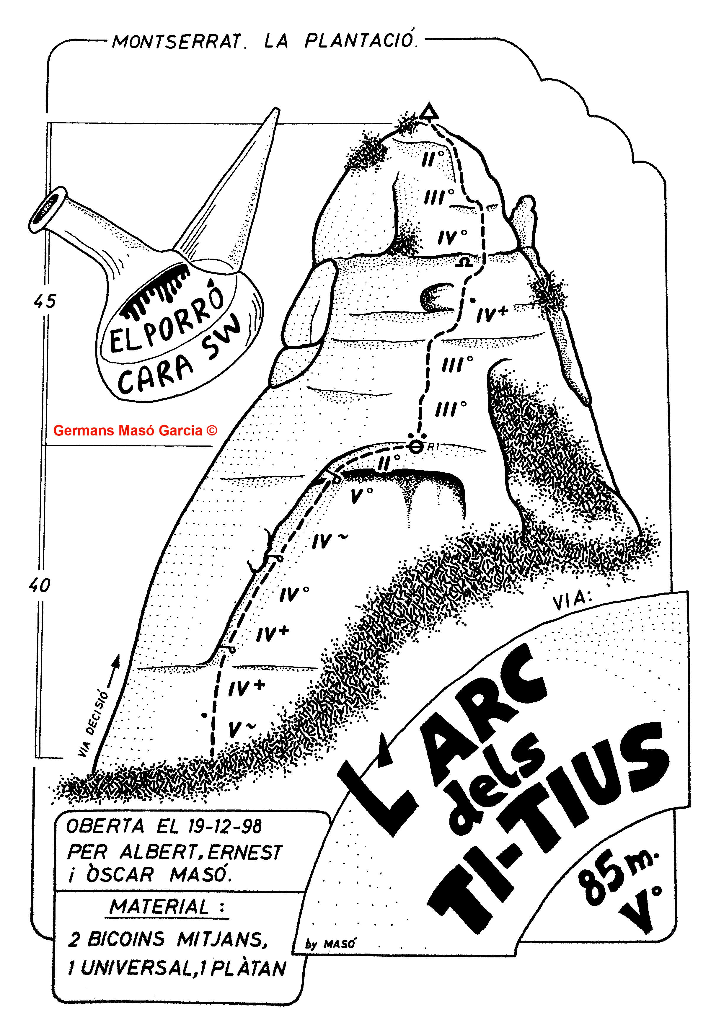 SEGURETAT: La pràctica de l’escalada és un esport que comporta risc. Tothom qui vulgui repetir alguna de les vies ressenyades en aquesta web és l’únic responsable de la seva pròpia seguretat i del conjunt de la cordada. En aquest sentit, els autors de les vies i les ressenyes declinen qualsevol responsabilitat.