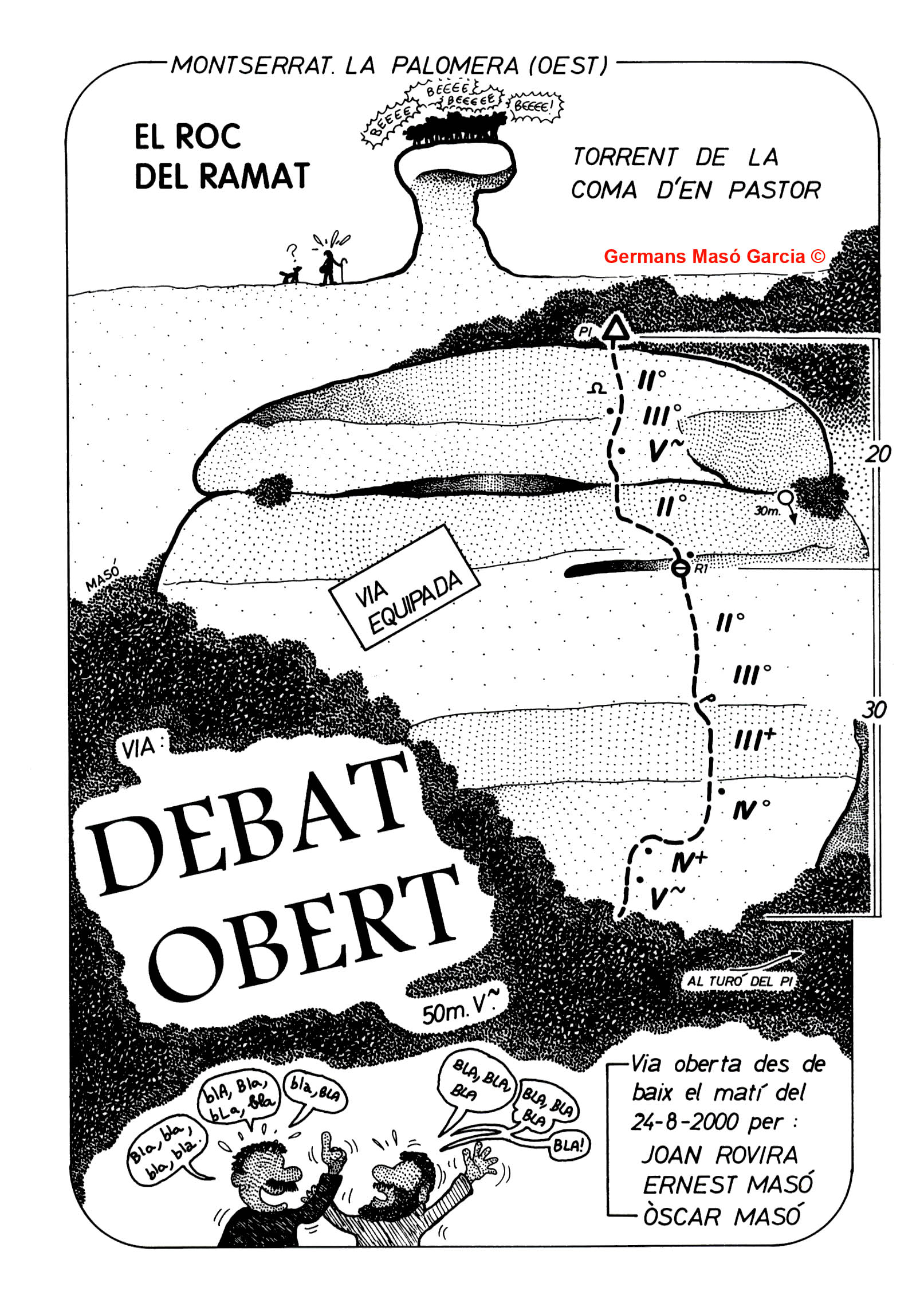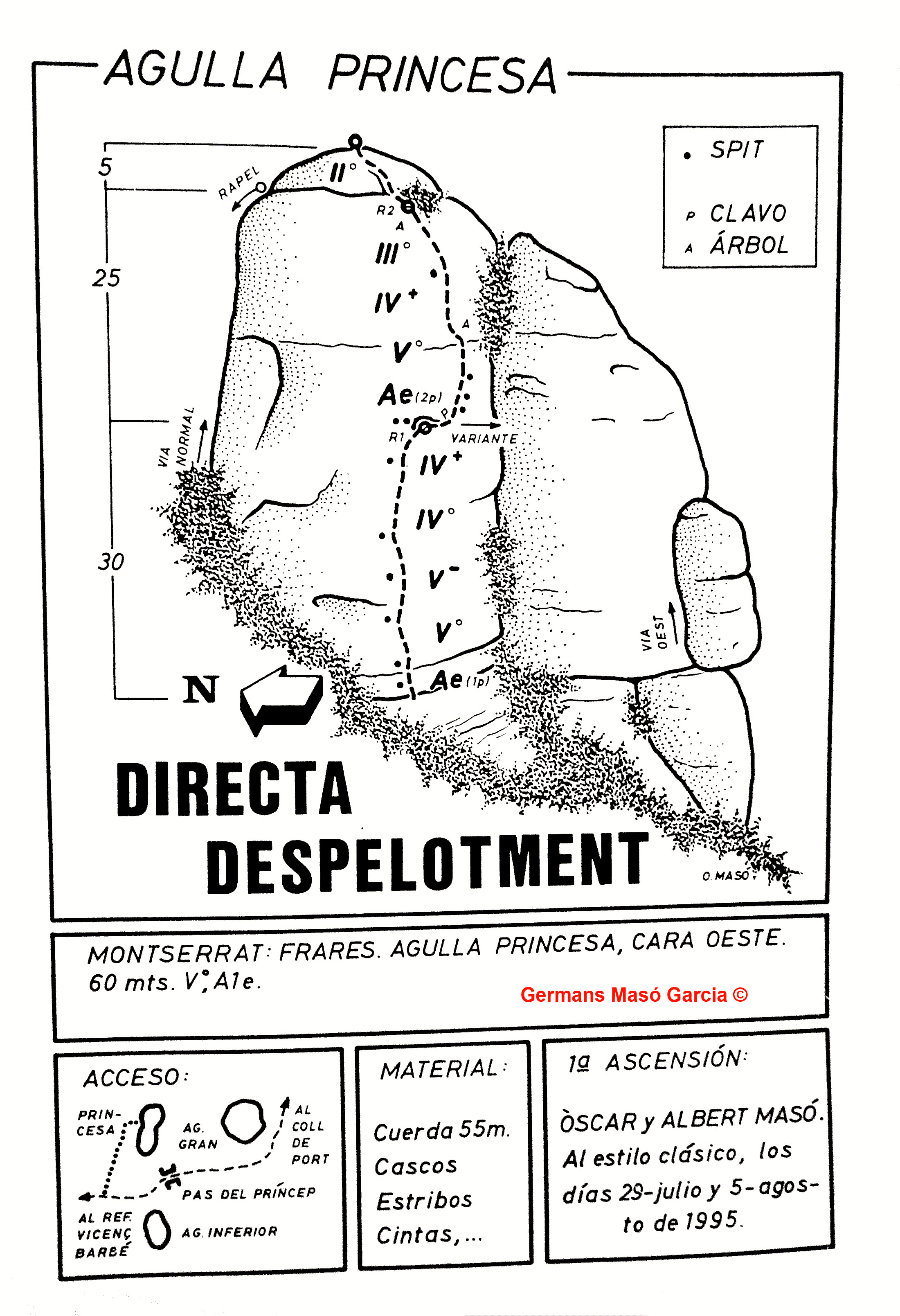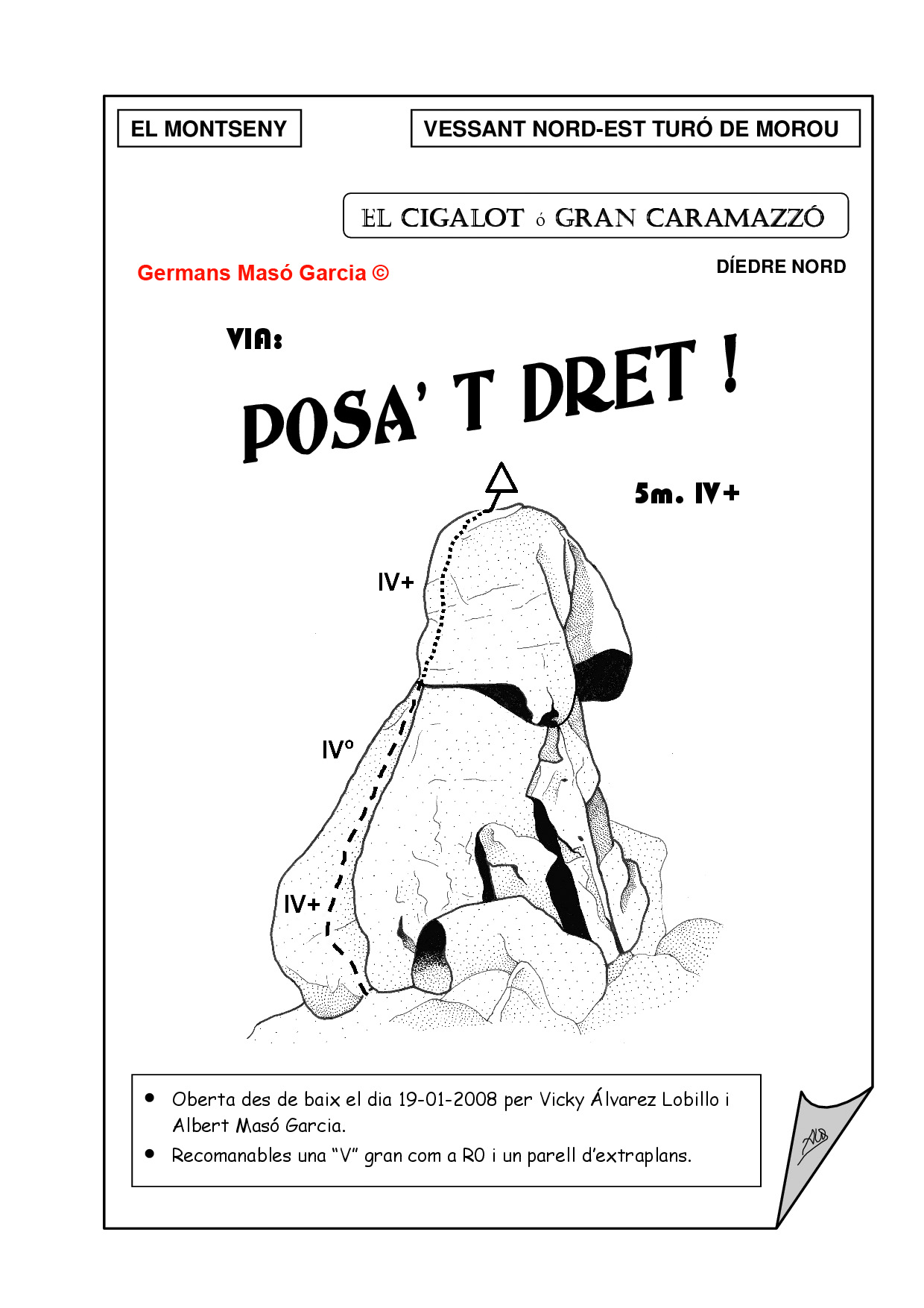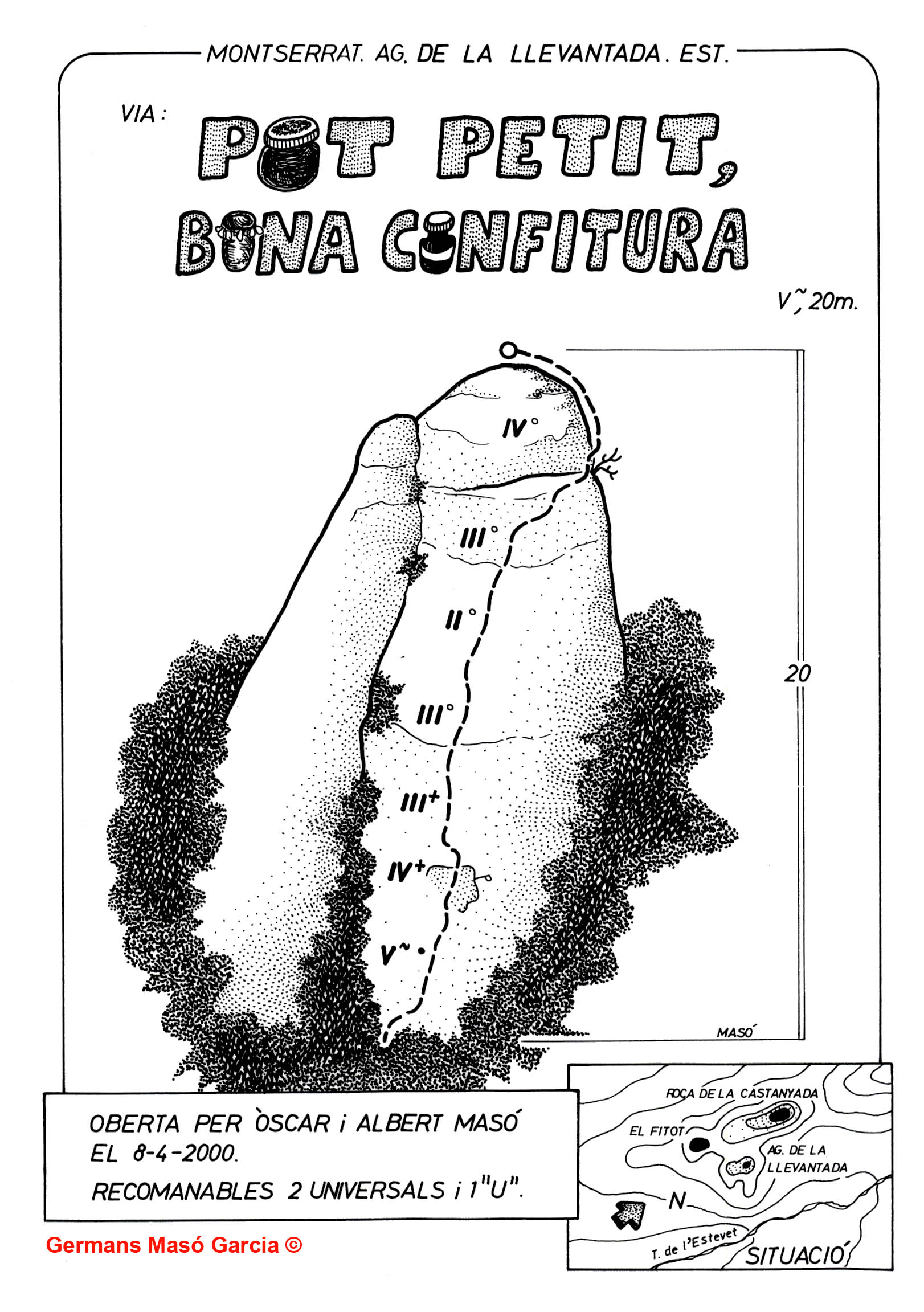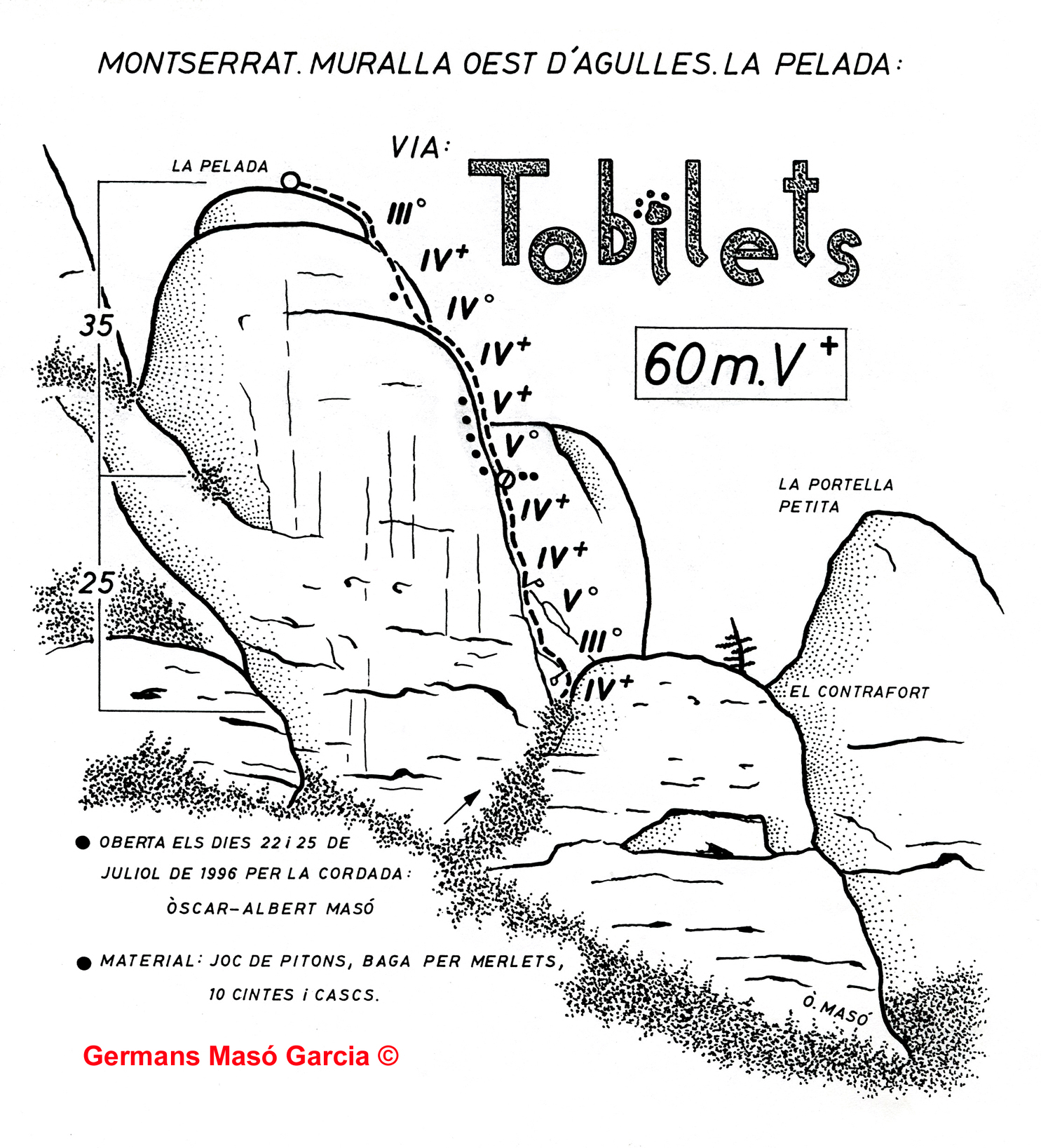 SEGURETAT: La pràctica de l’escalada és un esport que comporta risc. Tothom qui vulgui repetir alguna de les vies ressenyades en aquesta web és l’únic responsable de la seva pròpia seguretat i del conjunt de la cordada. En aquest sentit, els autors de les vies i les ressenyes declinen qualsevol responsabilitat.