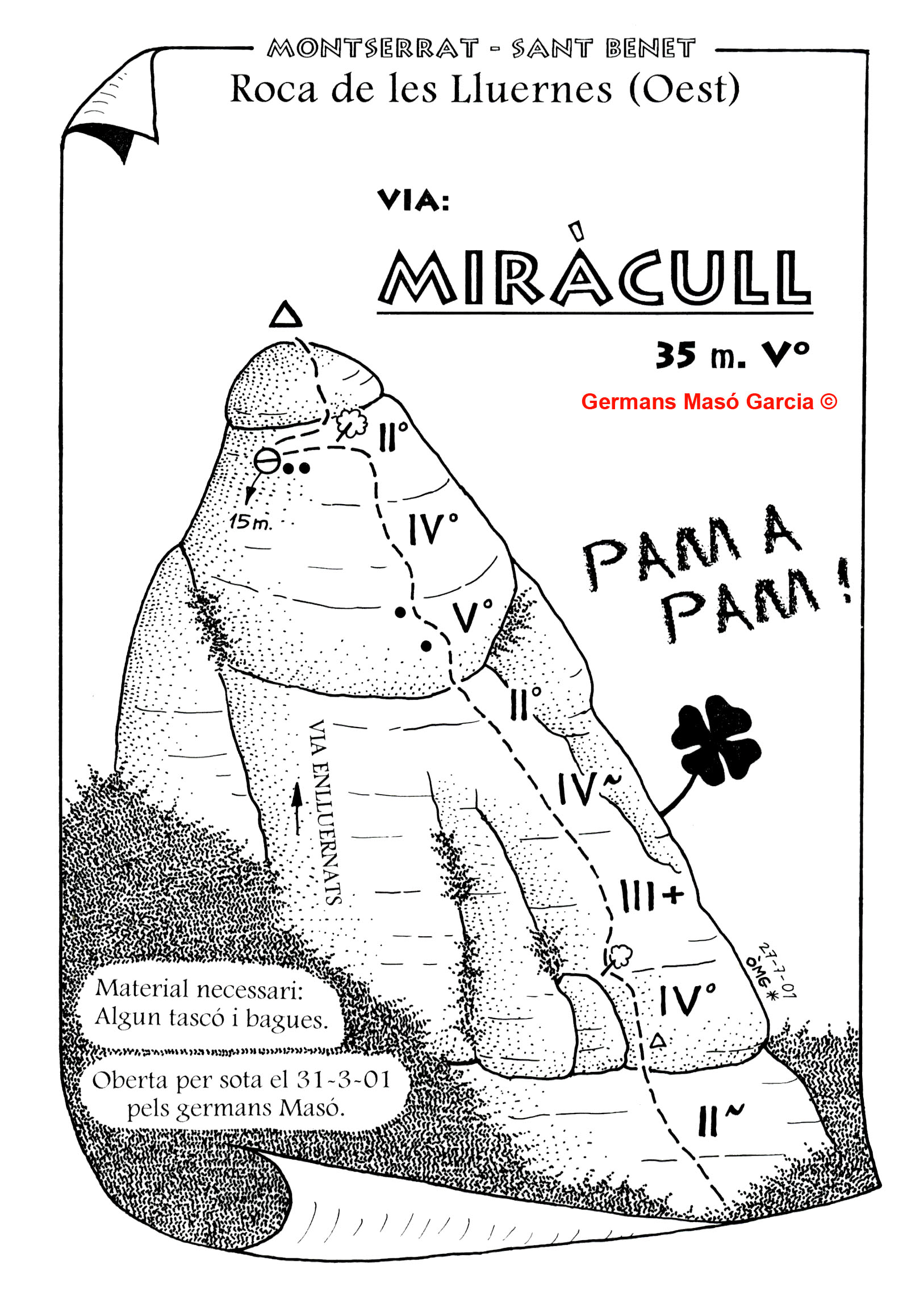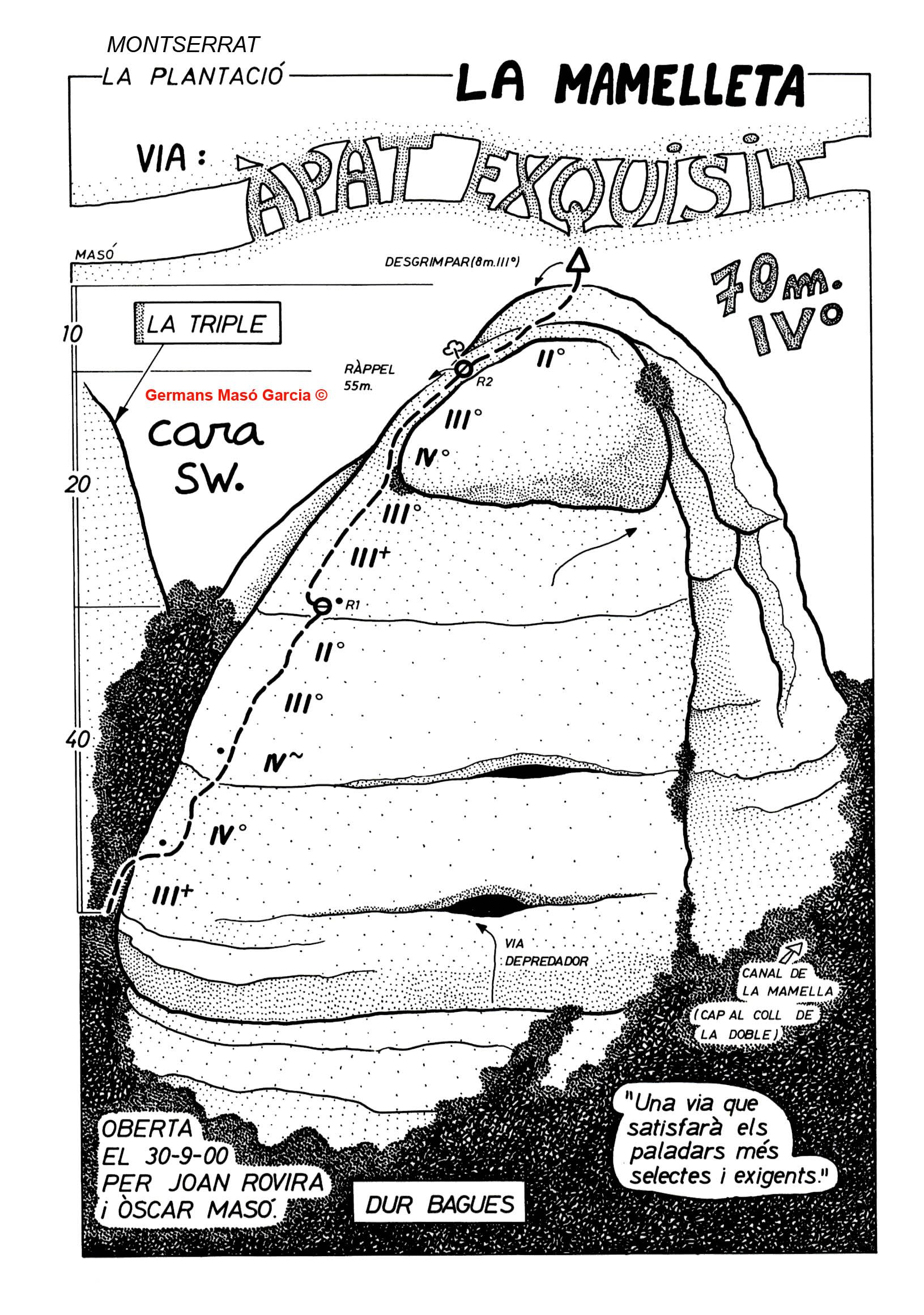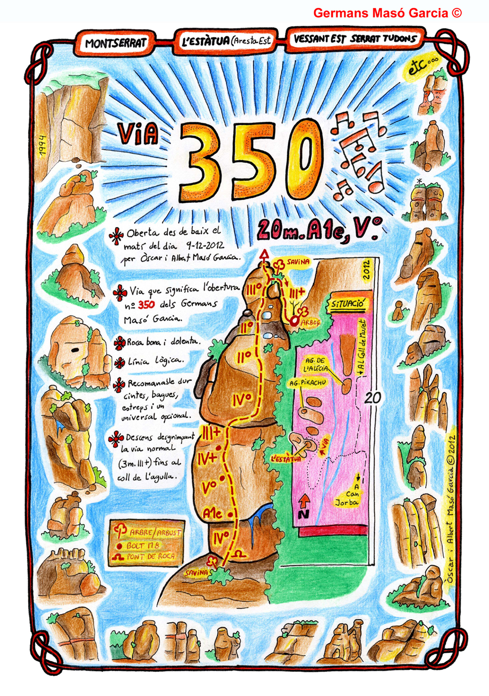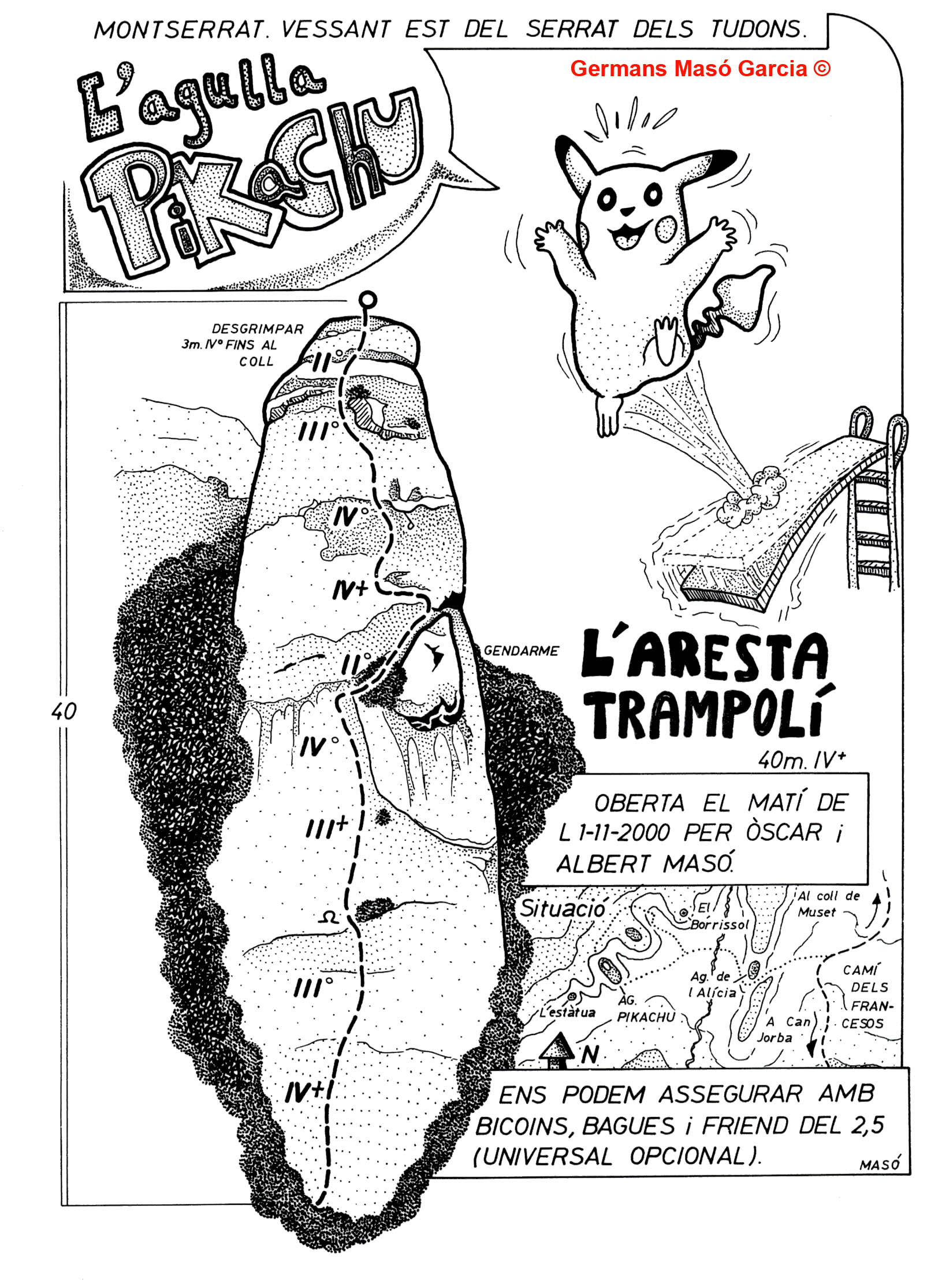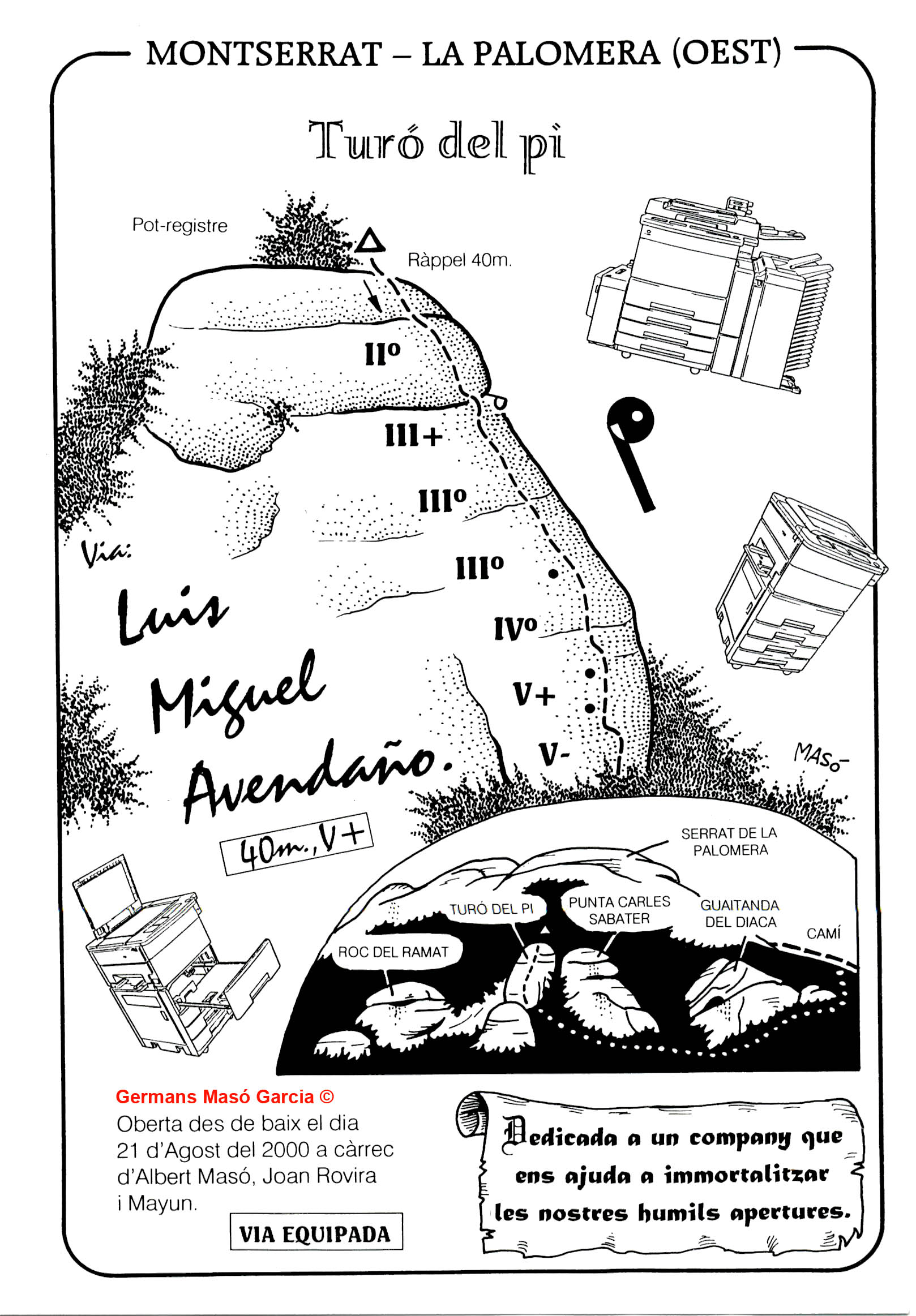 SEGURETAT: La pràctica de l’escalada és un esport que comporta risc. Tothom qui vulgui repetir alguna de les vies ressenyades en aquesta web és l’únic responsable de la seva pròpia seguretat i del conjunt de la cordada. En aquest sentit, els autors de les vies i les ressenyes declinen qualsevol responsabilitat.