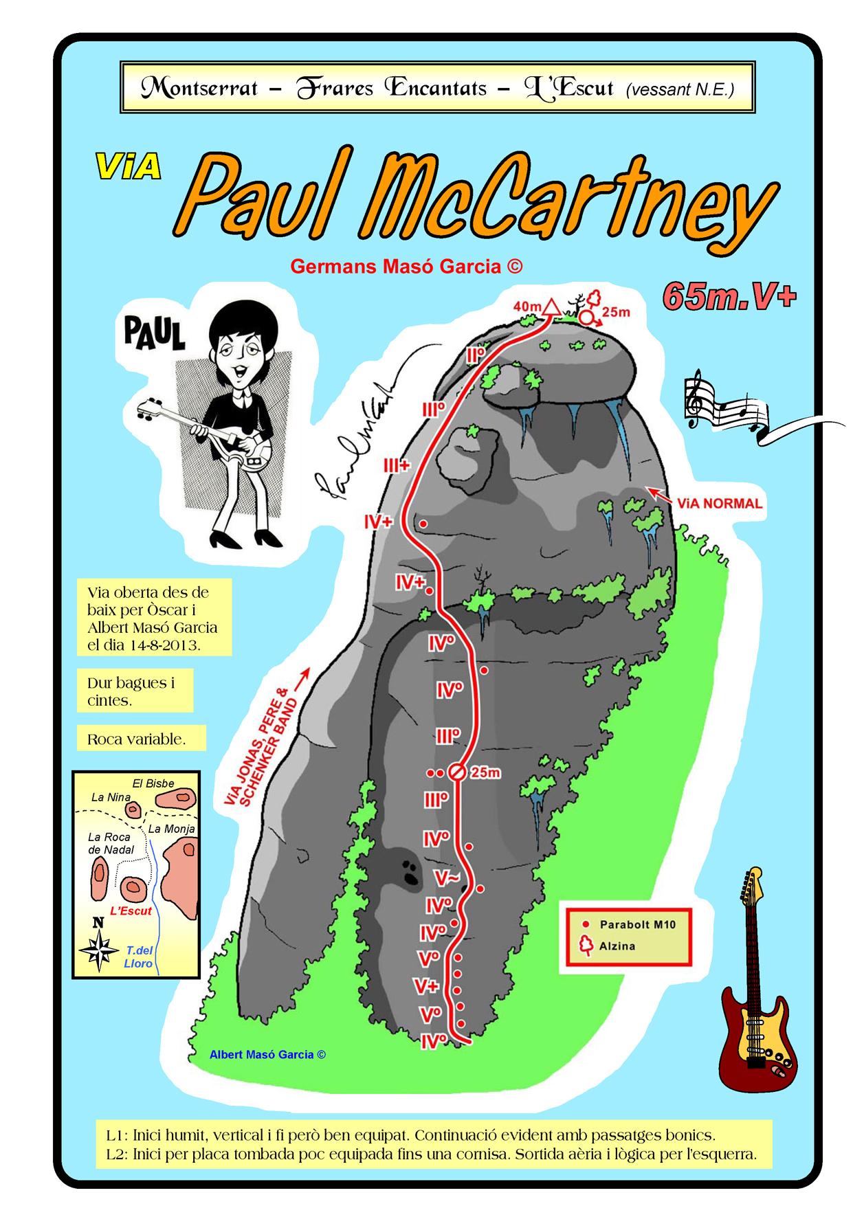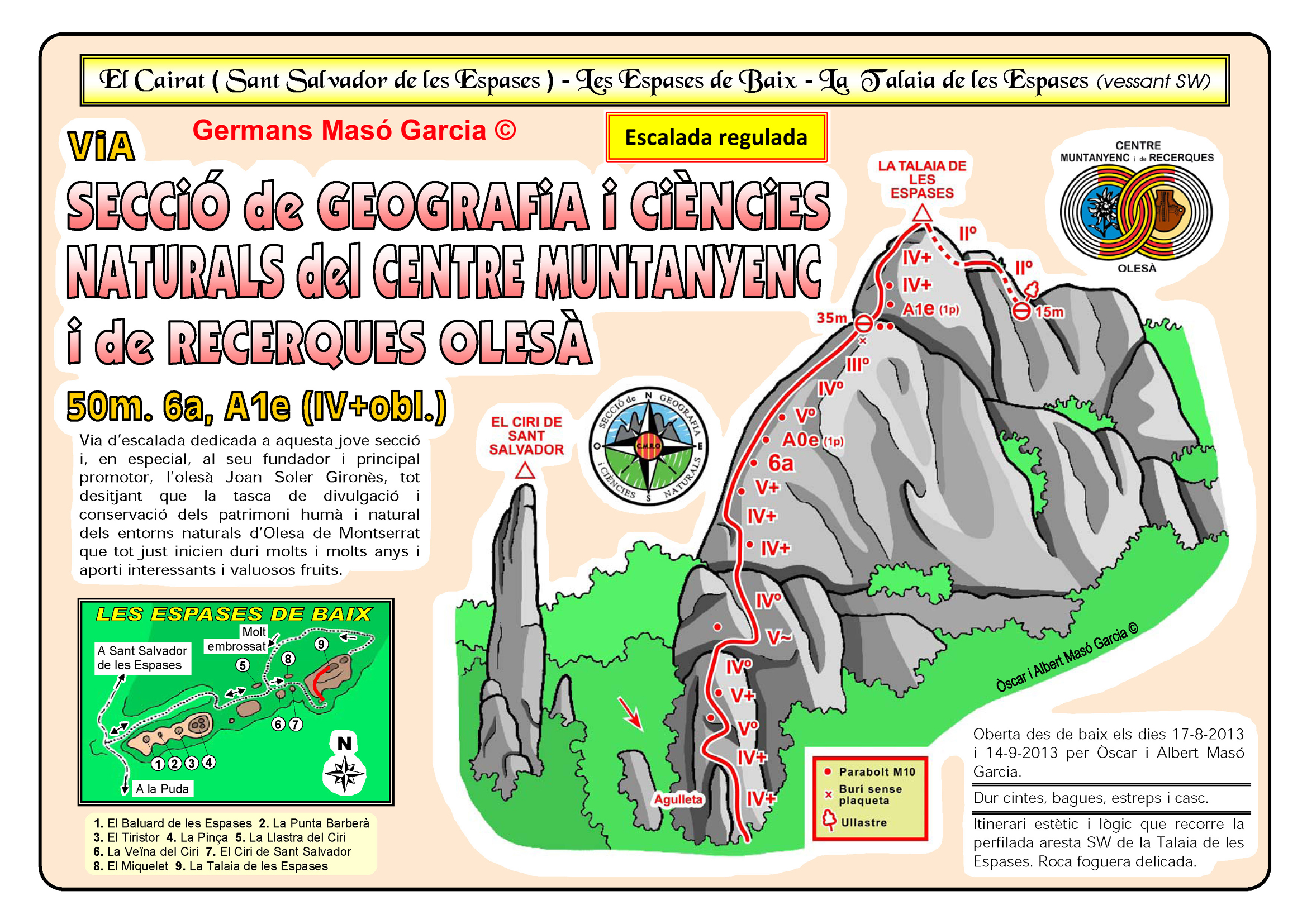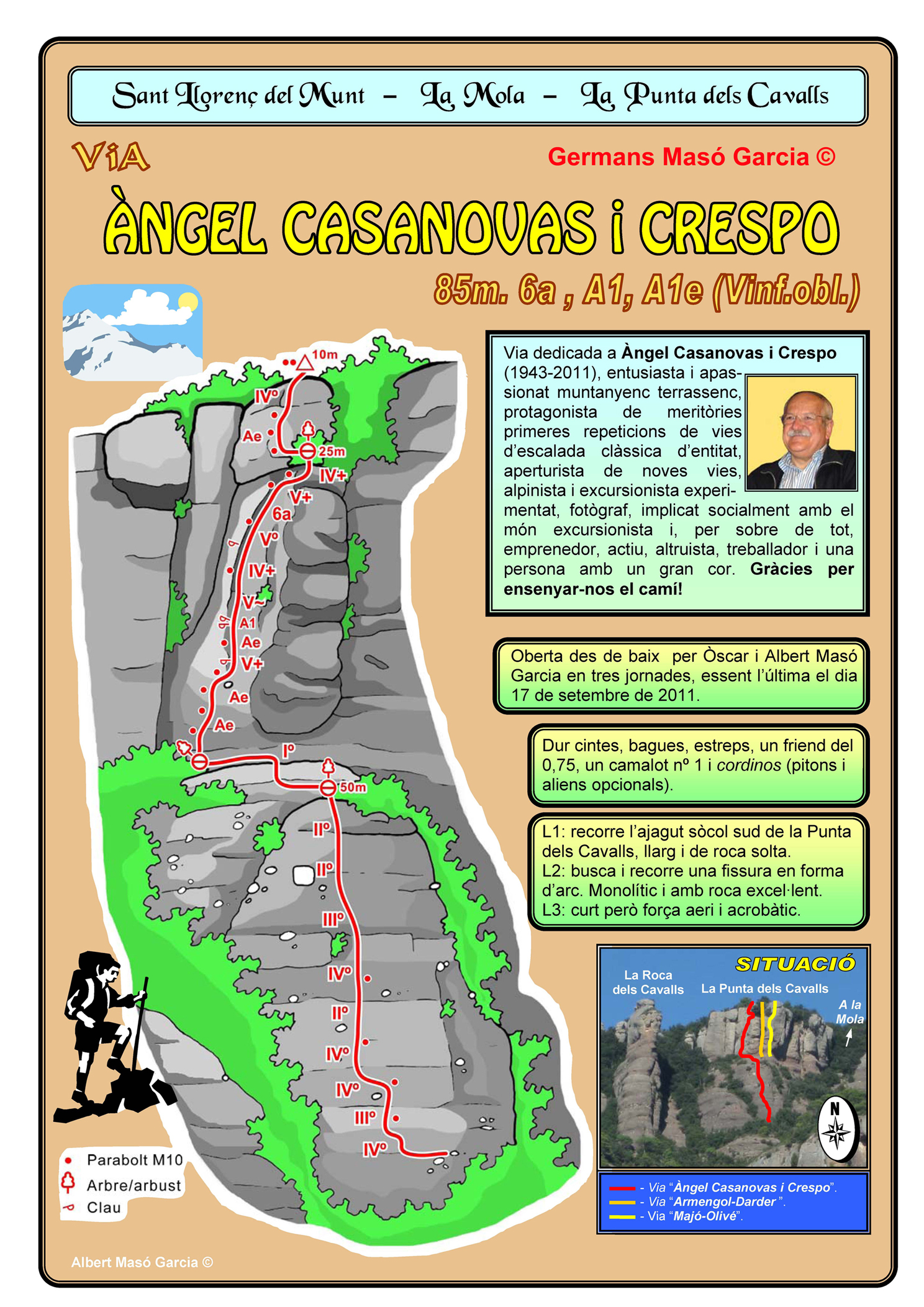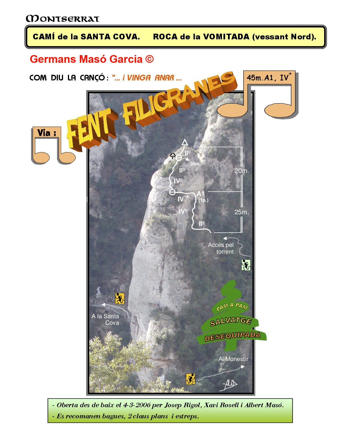 INFORMACIÓ: És molt important considerar que les ressenyes poden contenir errors i que l’estat de les vies, així com el de les assegurances pot haver variat significativament respecte del moment original en què es varen obrir. Per això es recomana buscar informació actualitzada i prendre les màximes precaucions possibles.