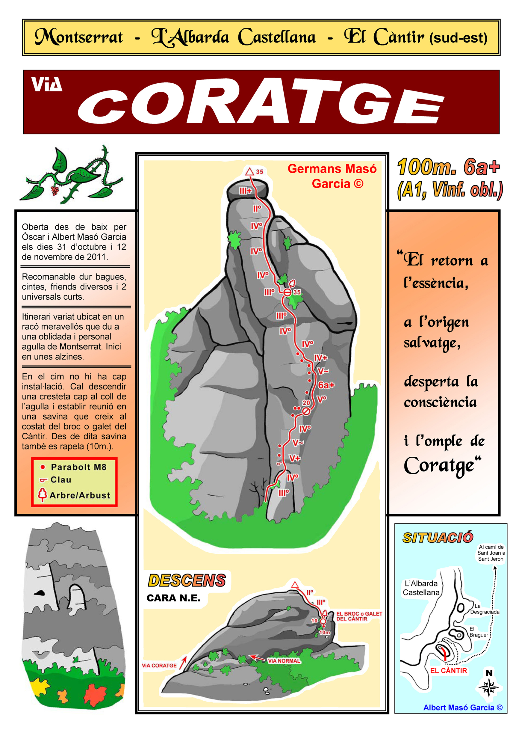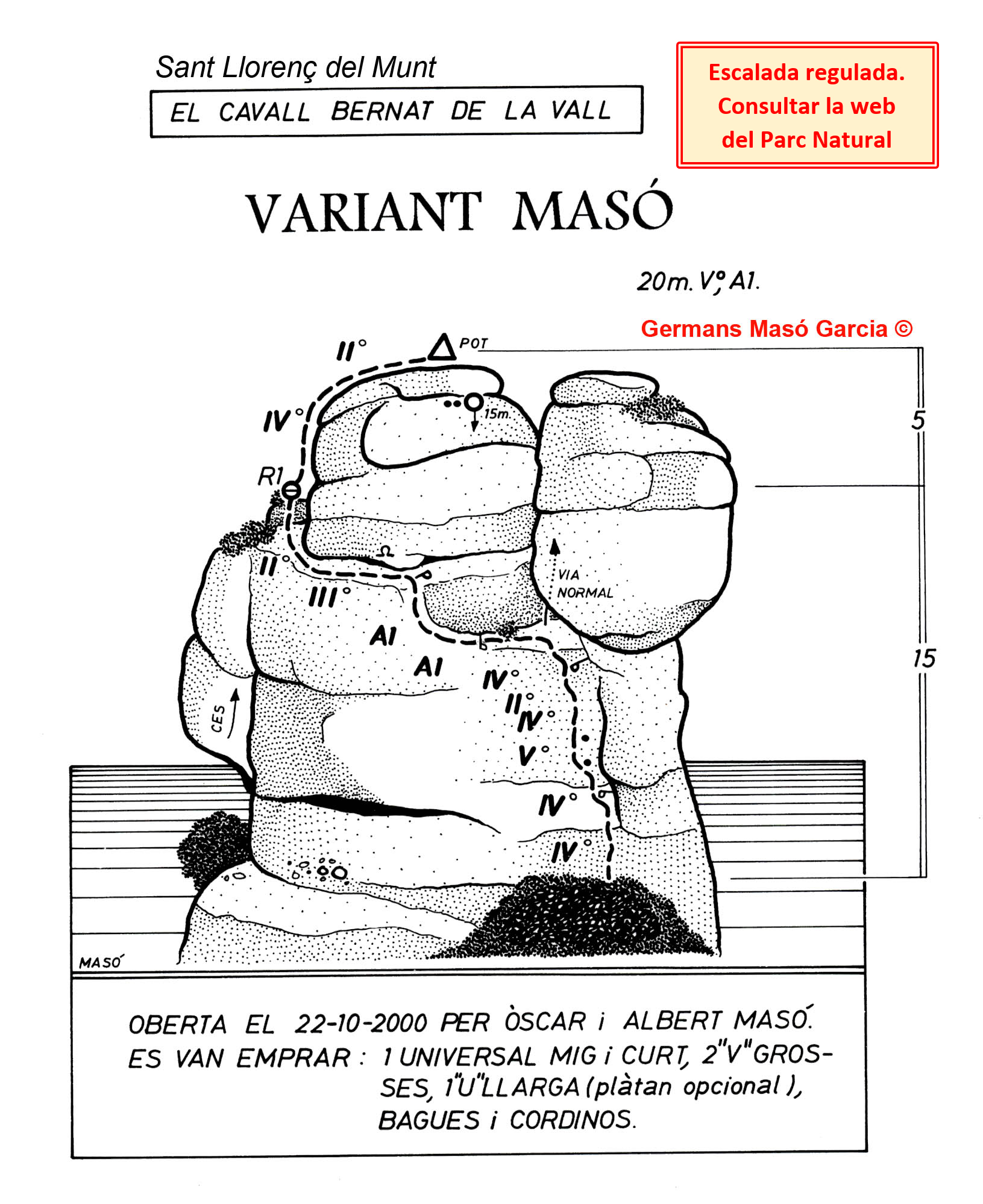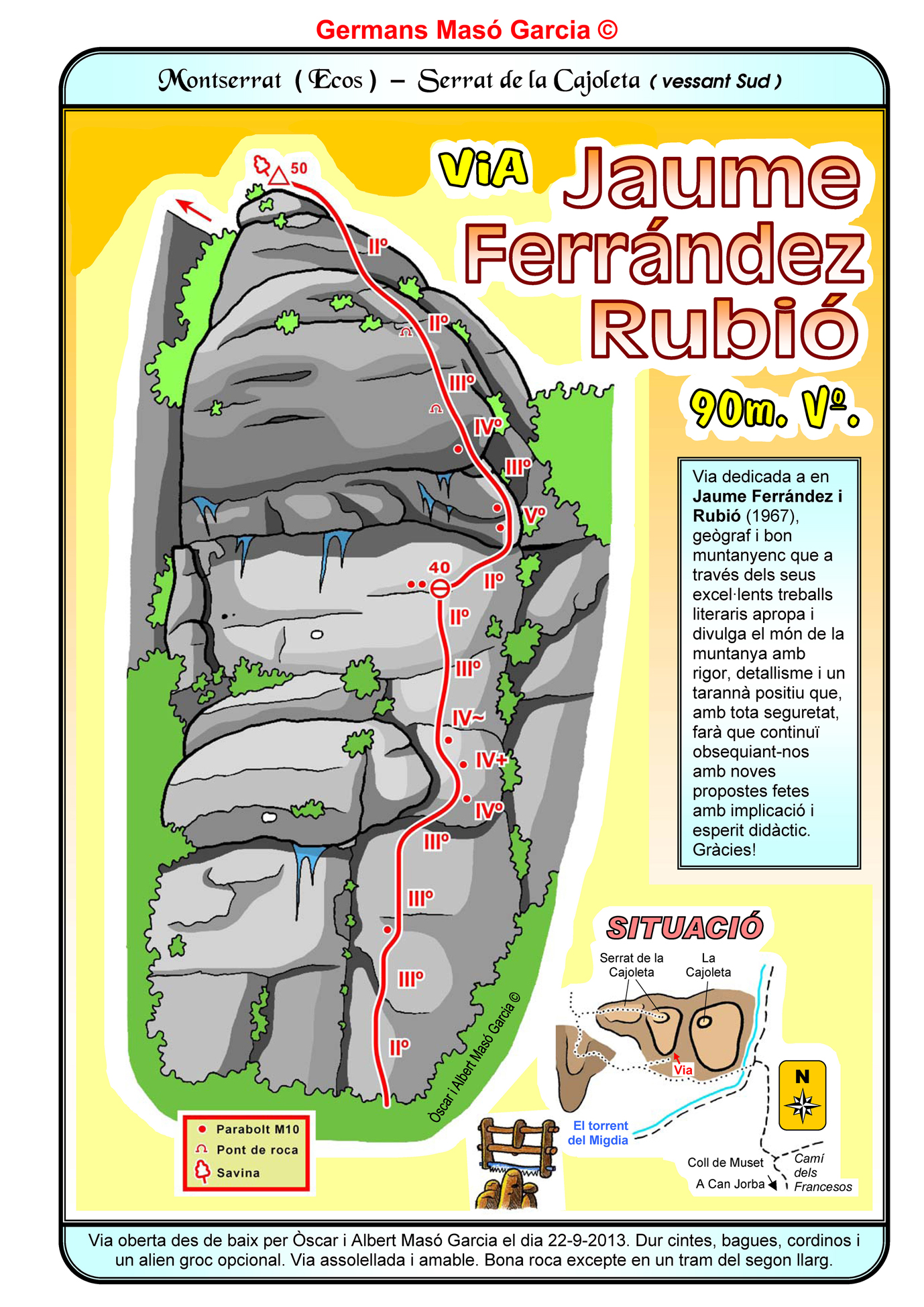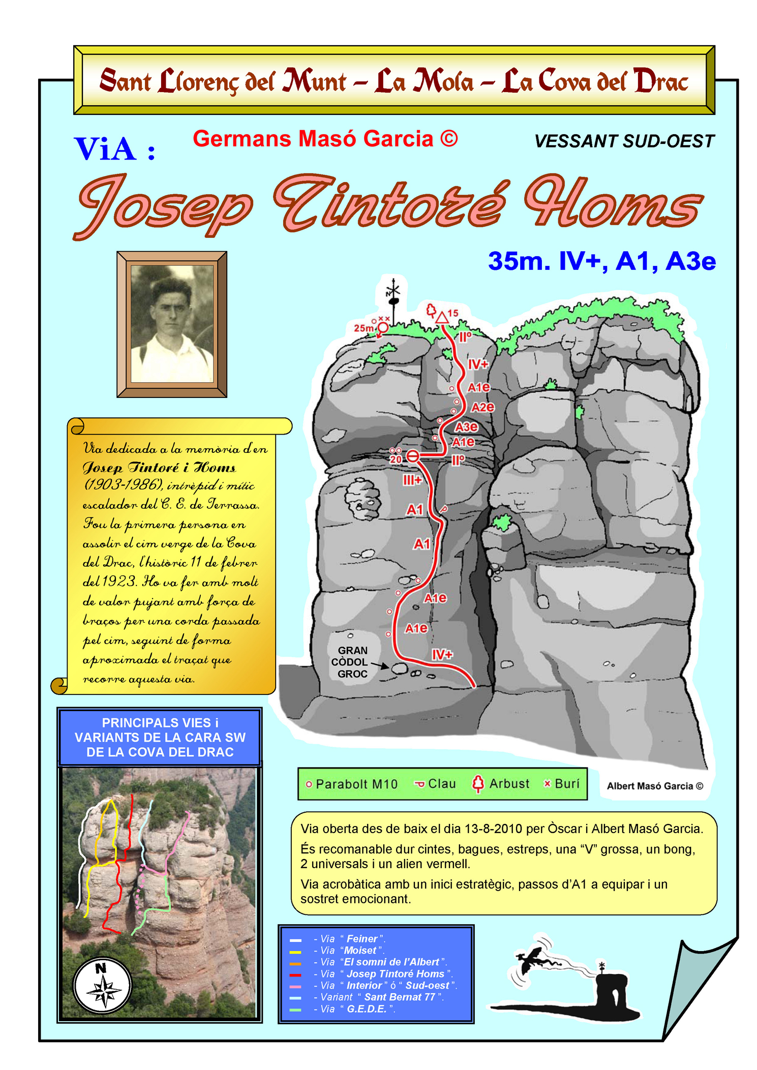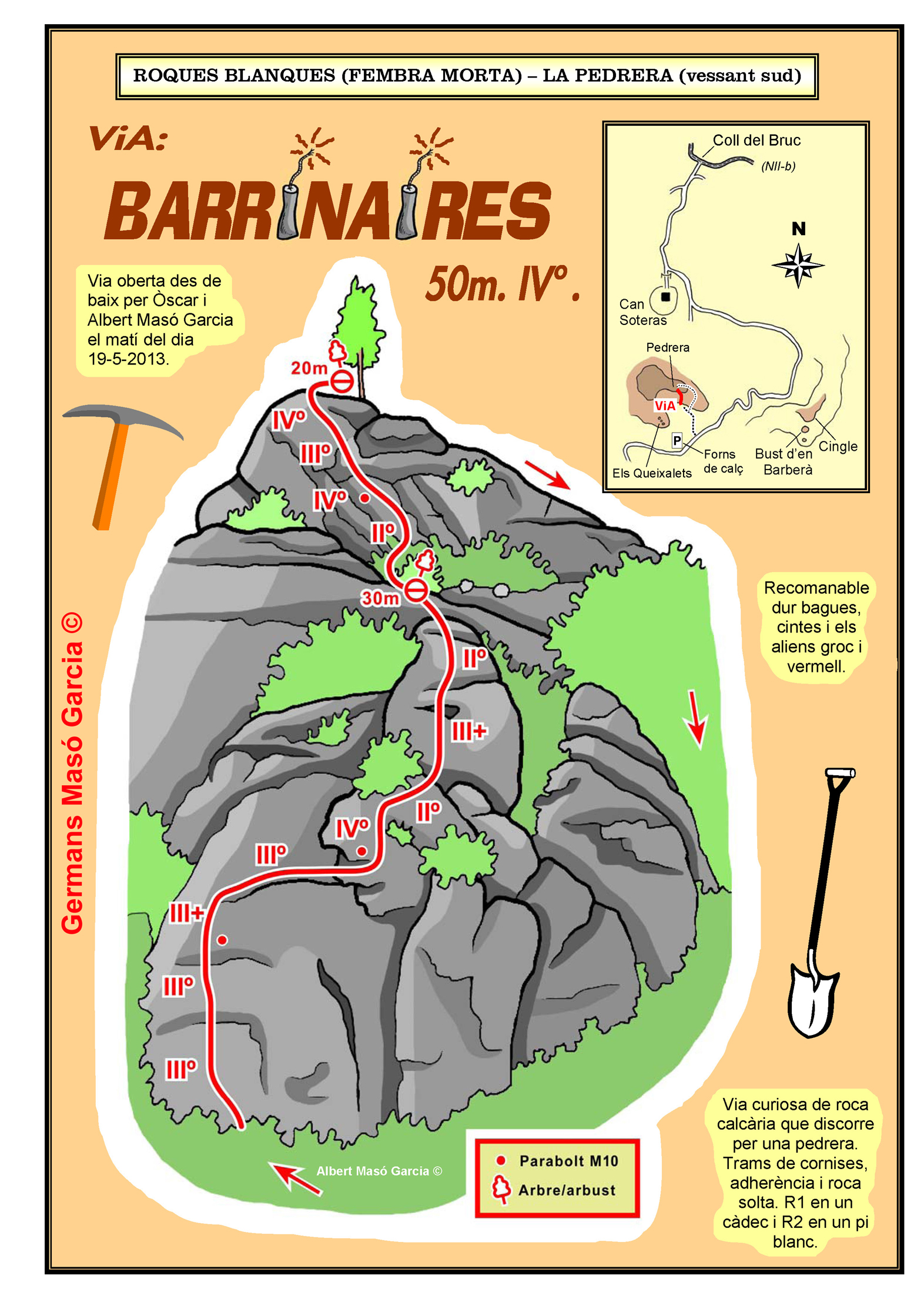 INFORMACIÓ: És molt important considerar que les ressenyes poden contenir errors i que l’estat de les vies, així com el de les assegurances pot haver variat significativament respecte del moment original en què es varen obrir. Per això es recomana buscar informació actualitzada i prendre les màximes precaucions possibles.