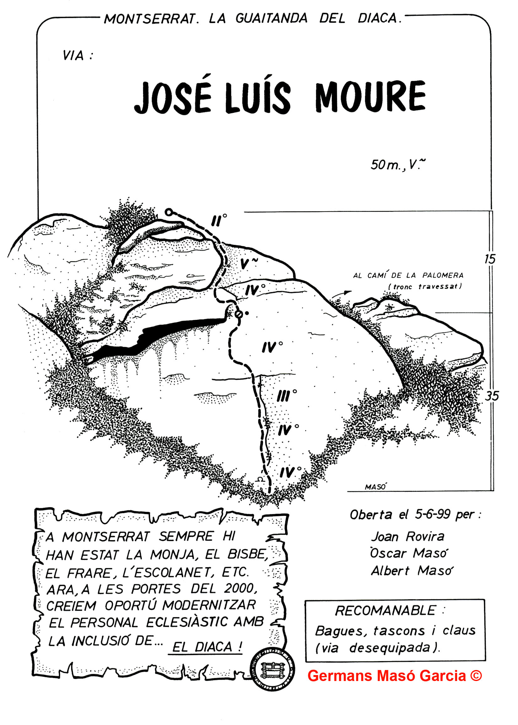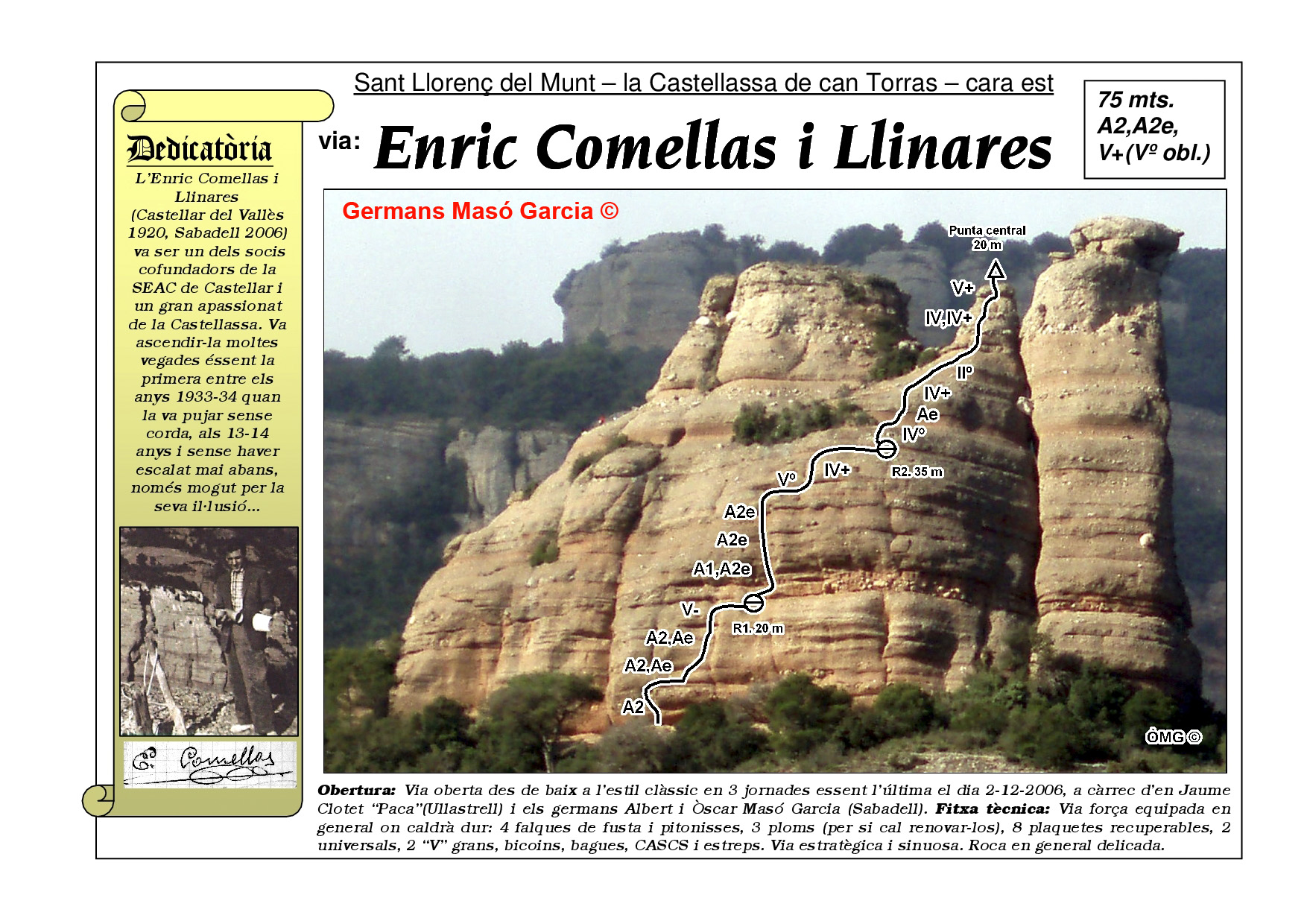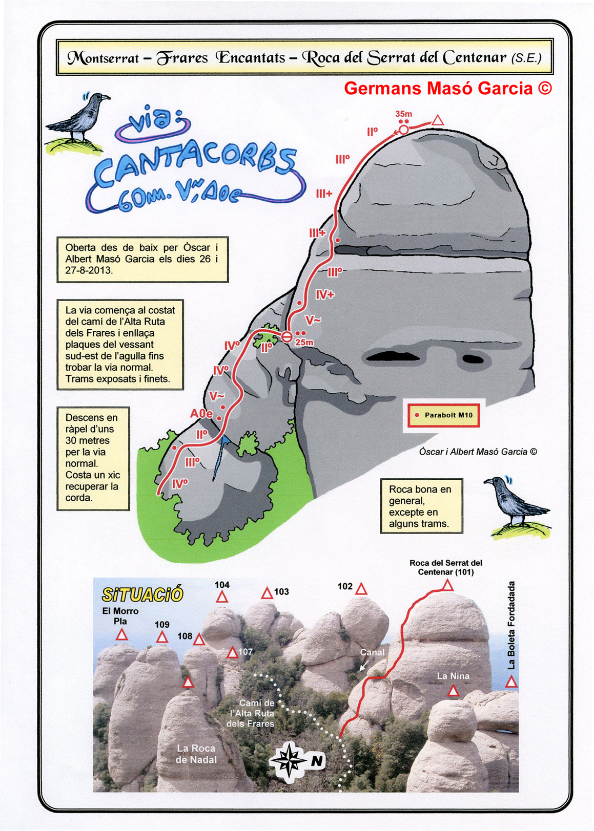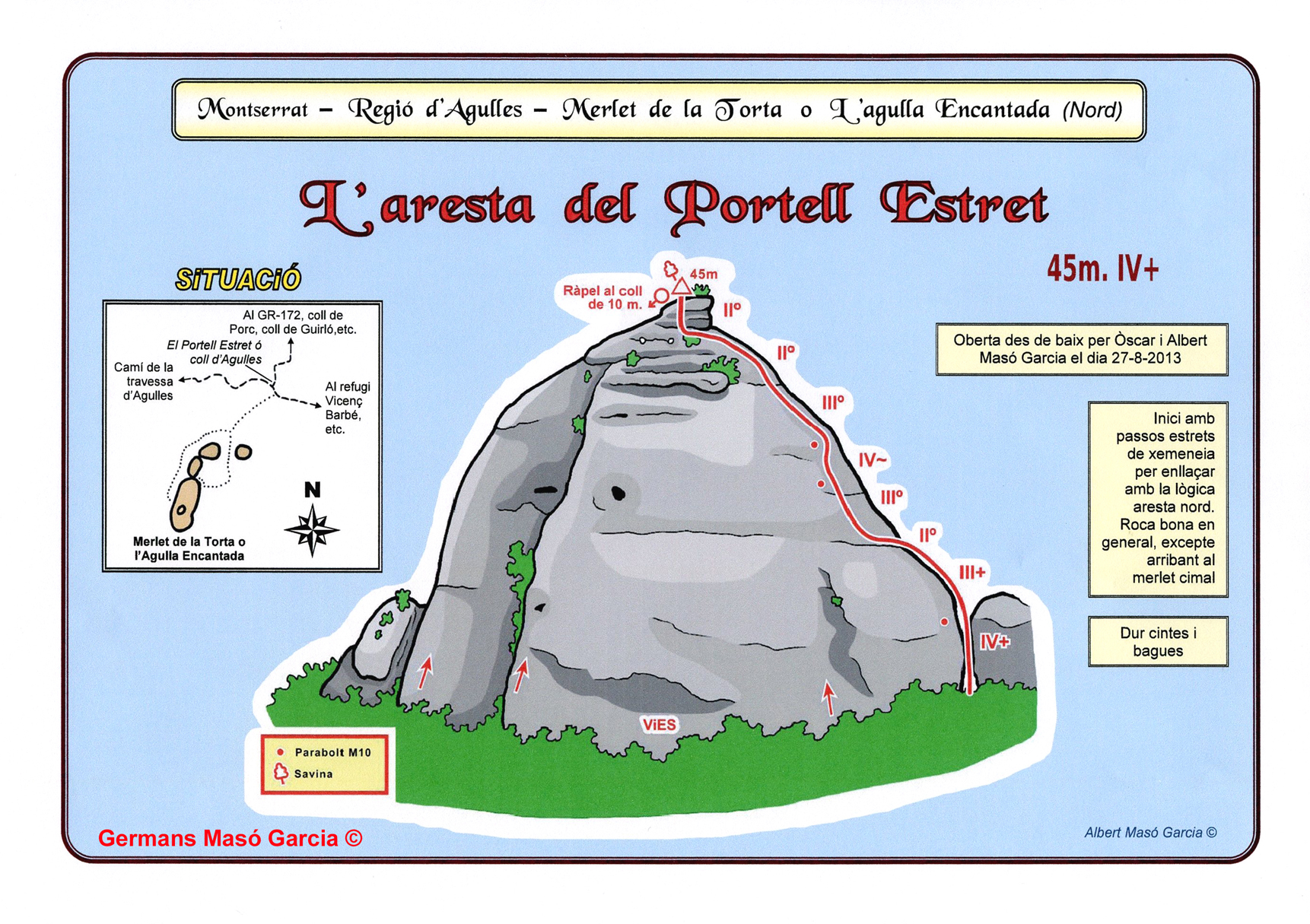 INFORMACIÓ: És molt important considerar que les ressenyes poden contenir errors i que l’estat de les vies, així com el de les assegurances pot haver variat significativament respecte del moment original en què es varen obrir. Per això es recomana buscar informació actualitzada i prendre les màximes precaucions possibles.