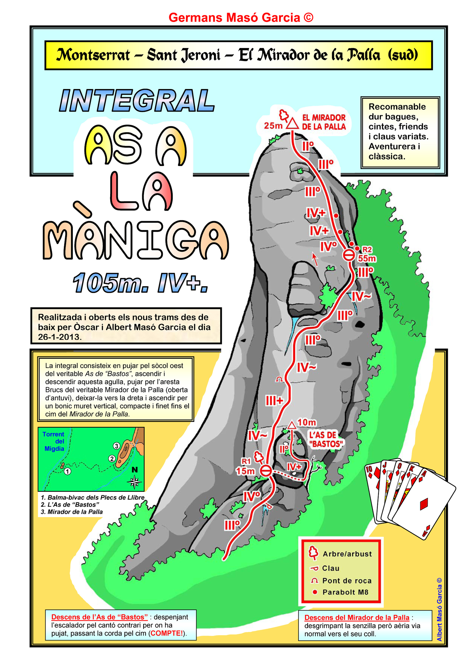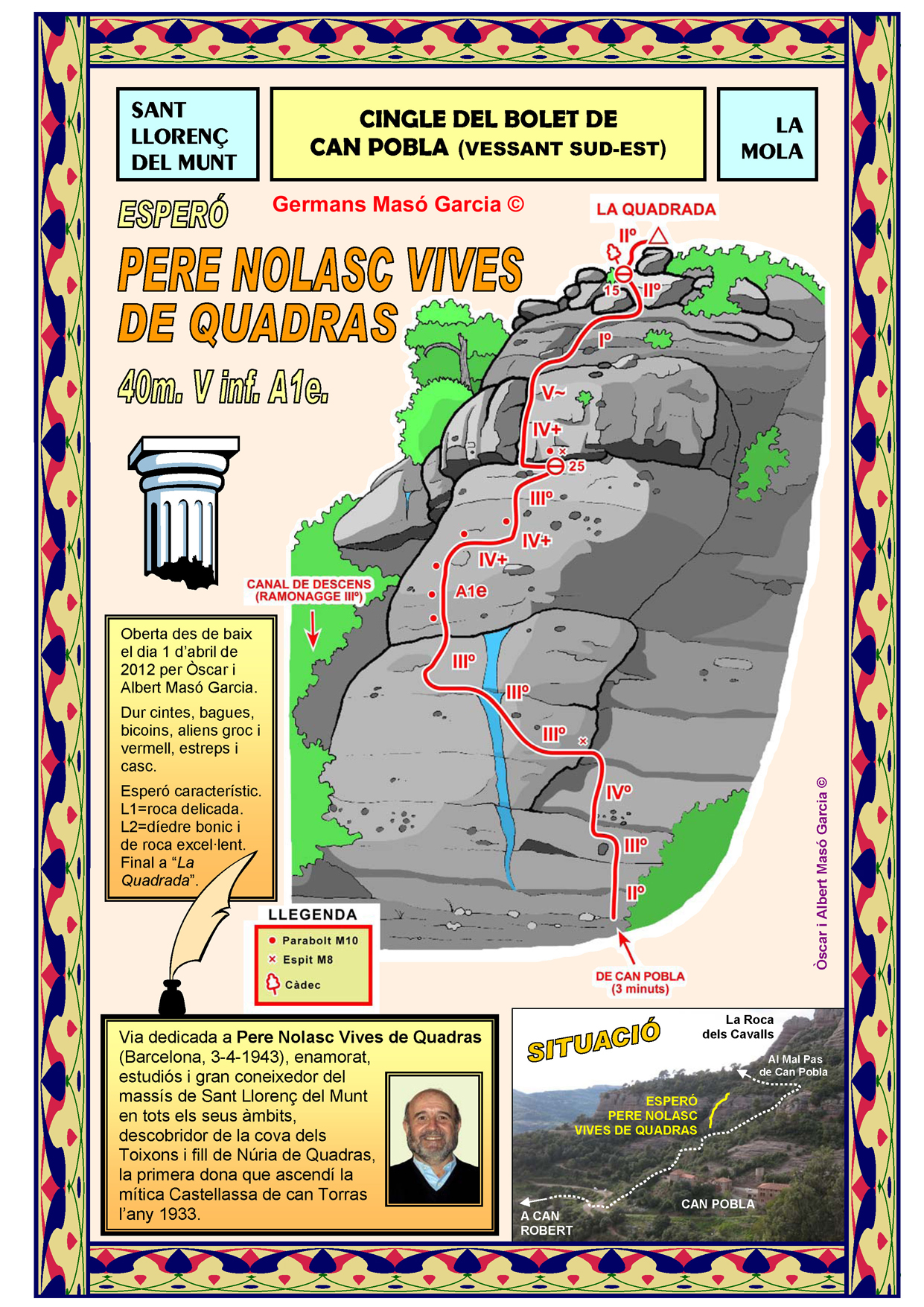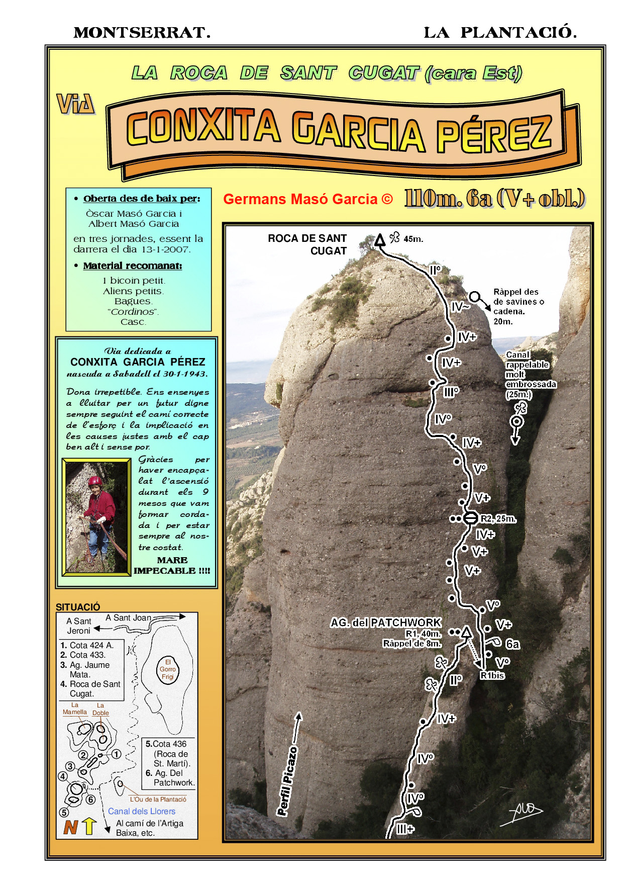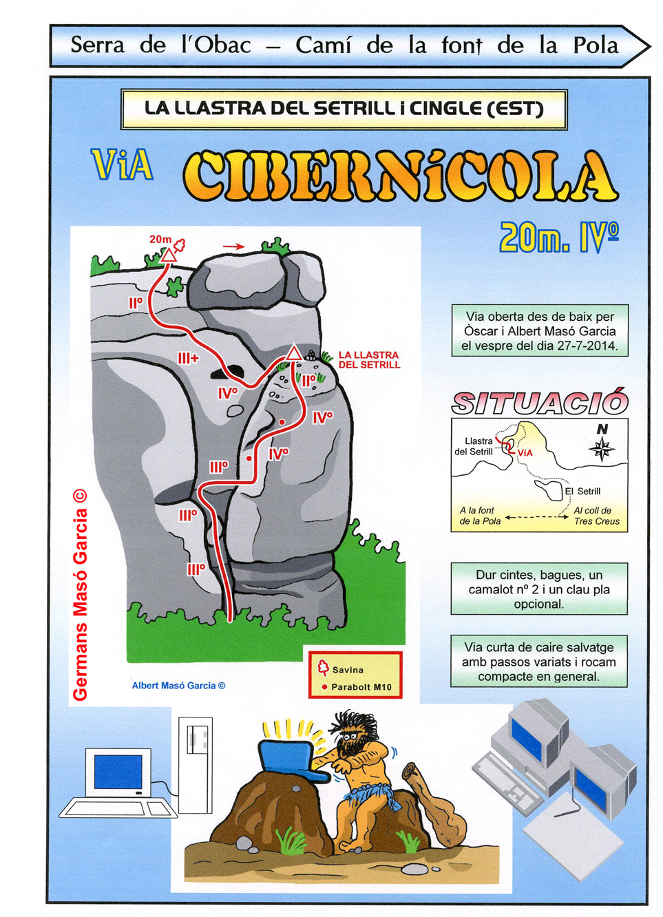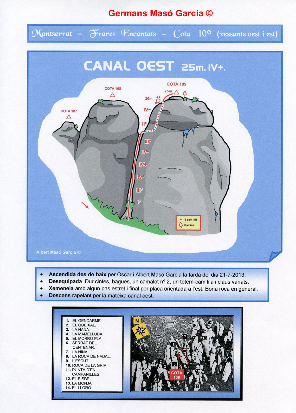 INFORMACIÓ: És molt important considerar que les ressenyes poden contenir errors i que l’estat de les vies, així com el de les assegurances pot haver variat significativament respecte del moment original en què es varen obrir. Per això es recomana buscar informació actualitzada i prendre les màximes precaucions possibles.